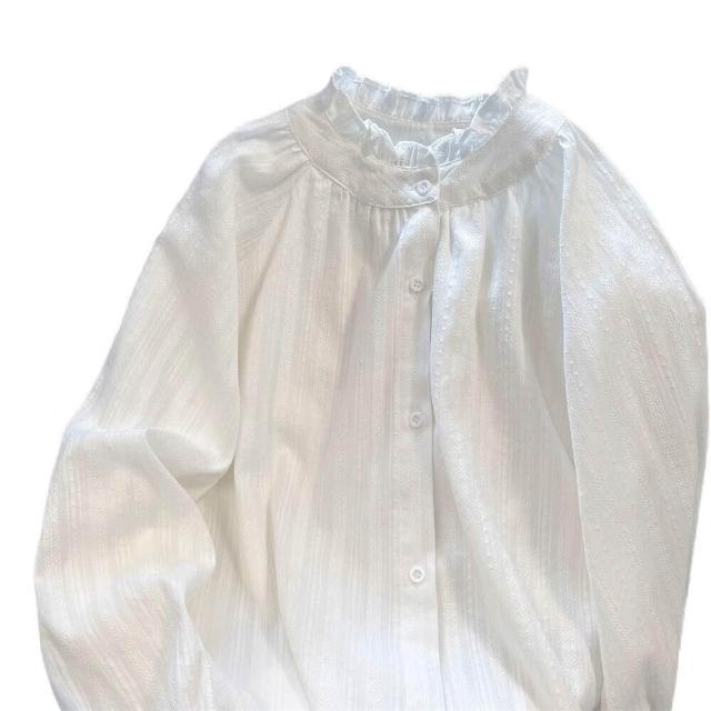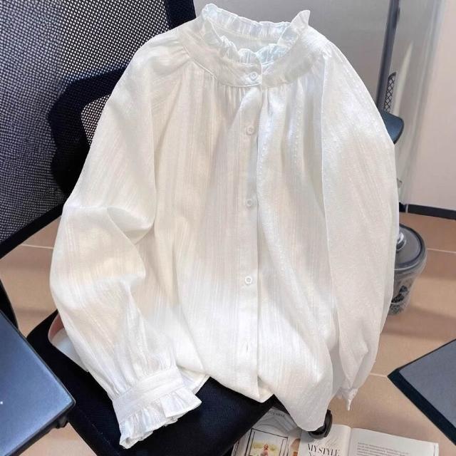 熱銷上衣免運 法式木耳荷葉邊立領襯衫女春秋季設計感小眾白色內搭打底長袖上衣