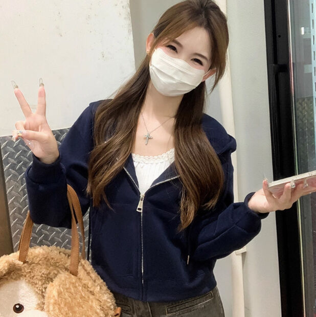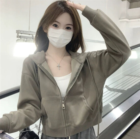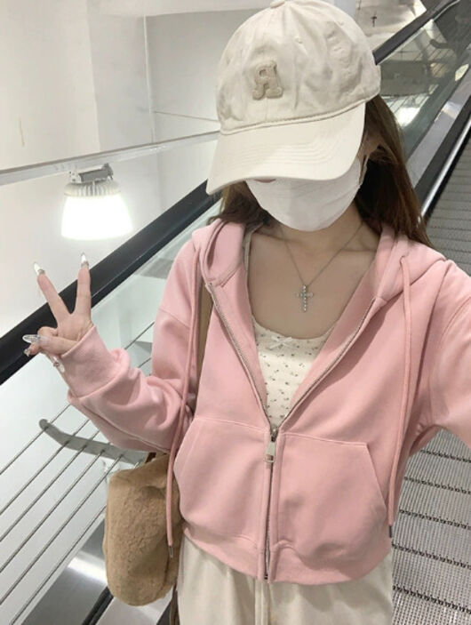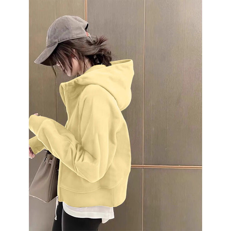 沐歆 超好看黄色衛衣短款外套女 2026新款连帽開衫 正肩修身早秋春季韓系穿搭上衣
