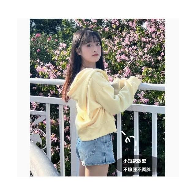 沐歆 超好看黄色衛衣短款外套女 2026新款连帽開衫 正肩修身早秋春季韓系穿搭上衣