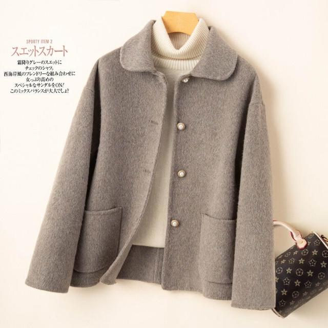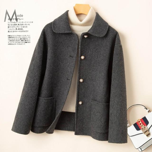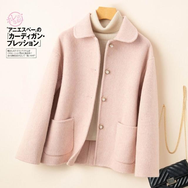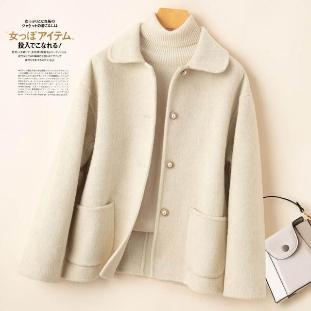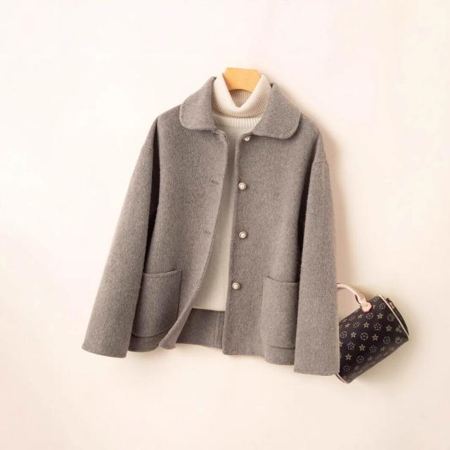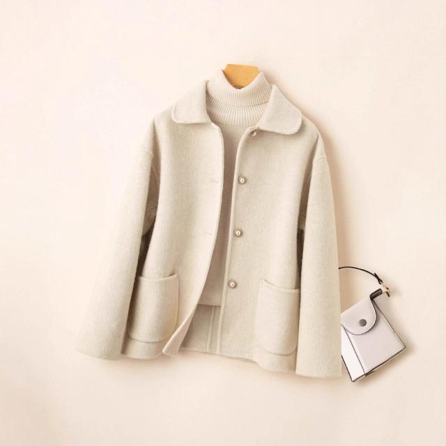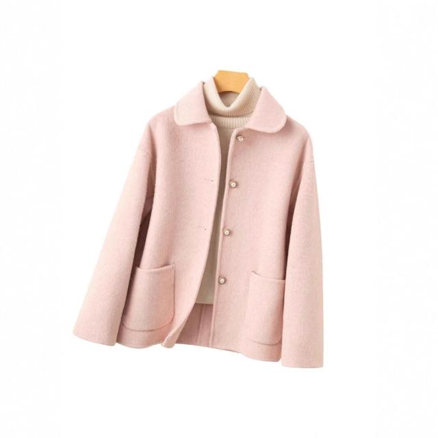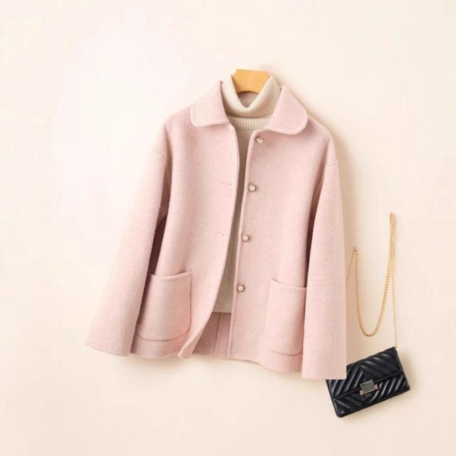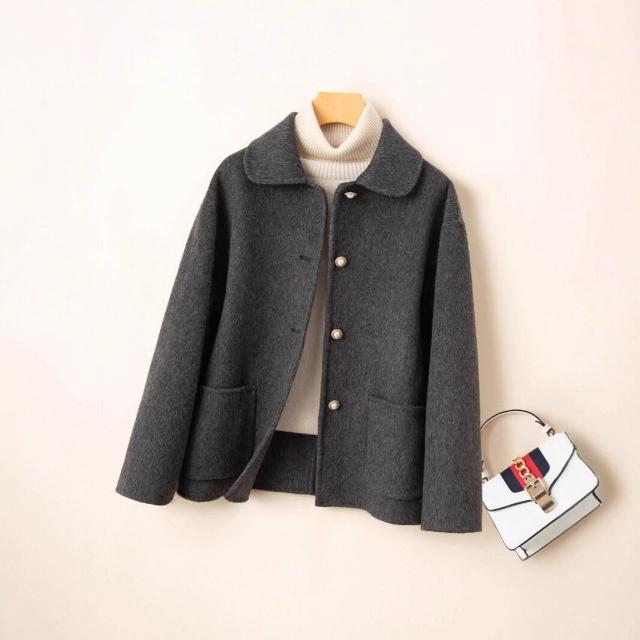 秋冬爆款 2025雙面羊毛大衣女短款小個子娃娃領小香風女士外套純色簡約外套