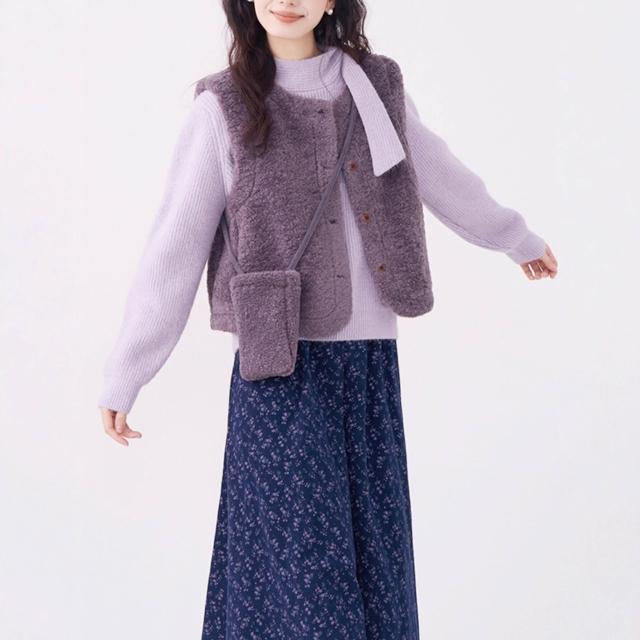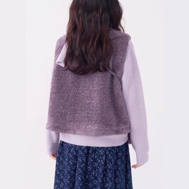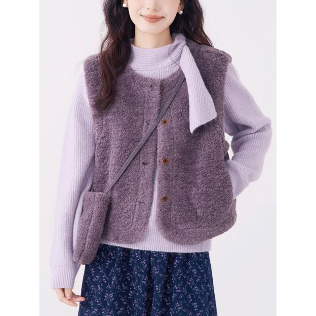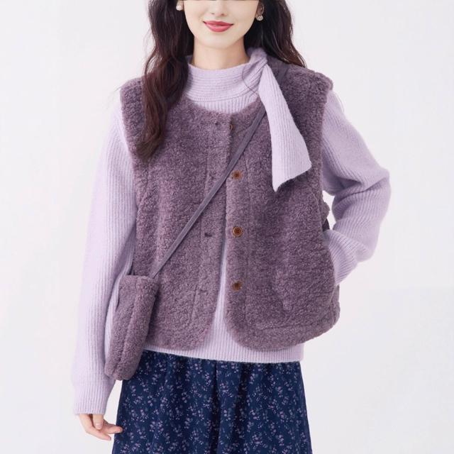 帶配套小包秋冬紫色羊羔毛單排扣馬甲女疊穿外穿通勤百搭毛絨背心