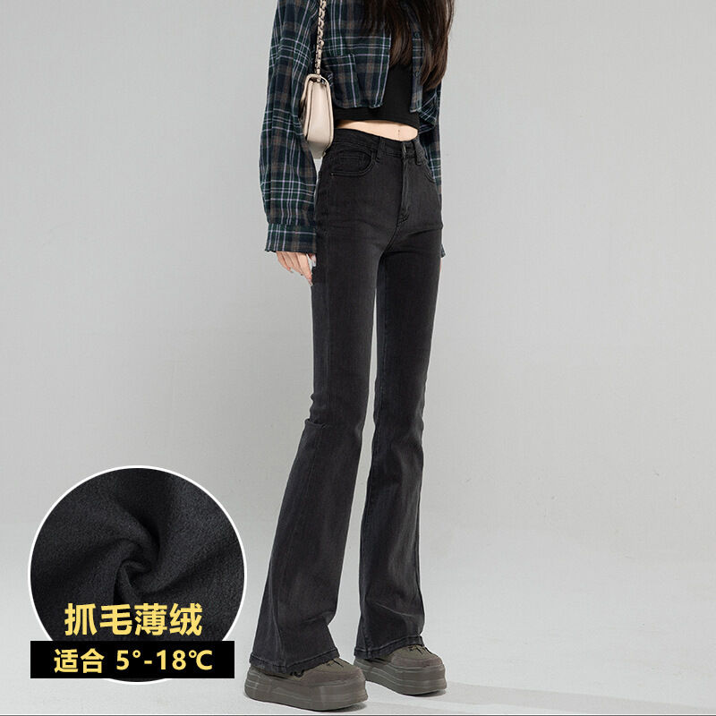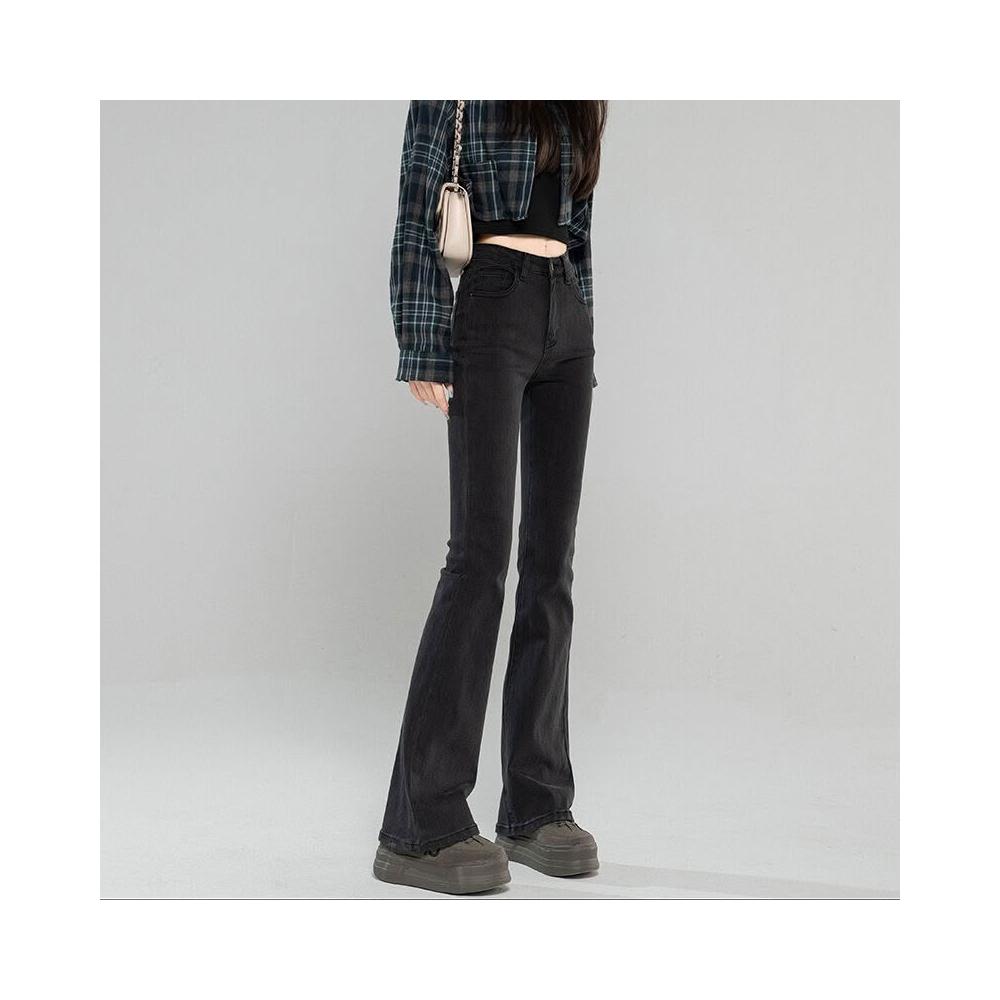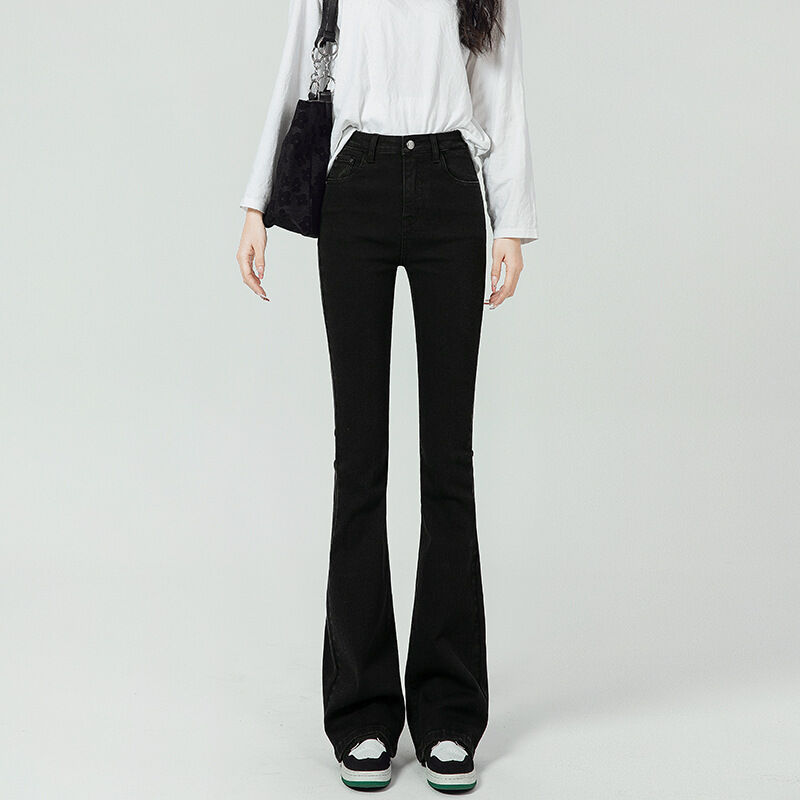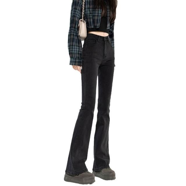 女神必備 黑色微喇褲子牛仔褲女春秋修身馬蹄小個子秋季喇叭褲新款灰色緊身