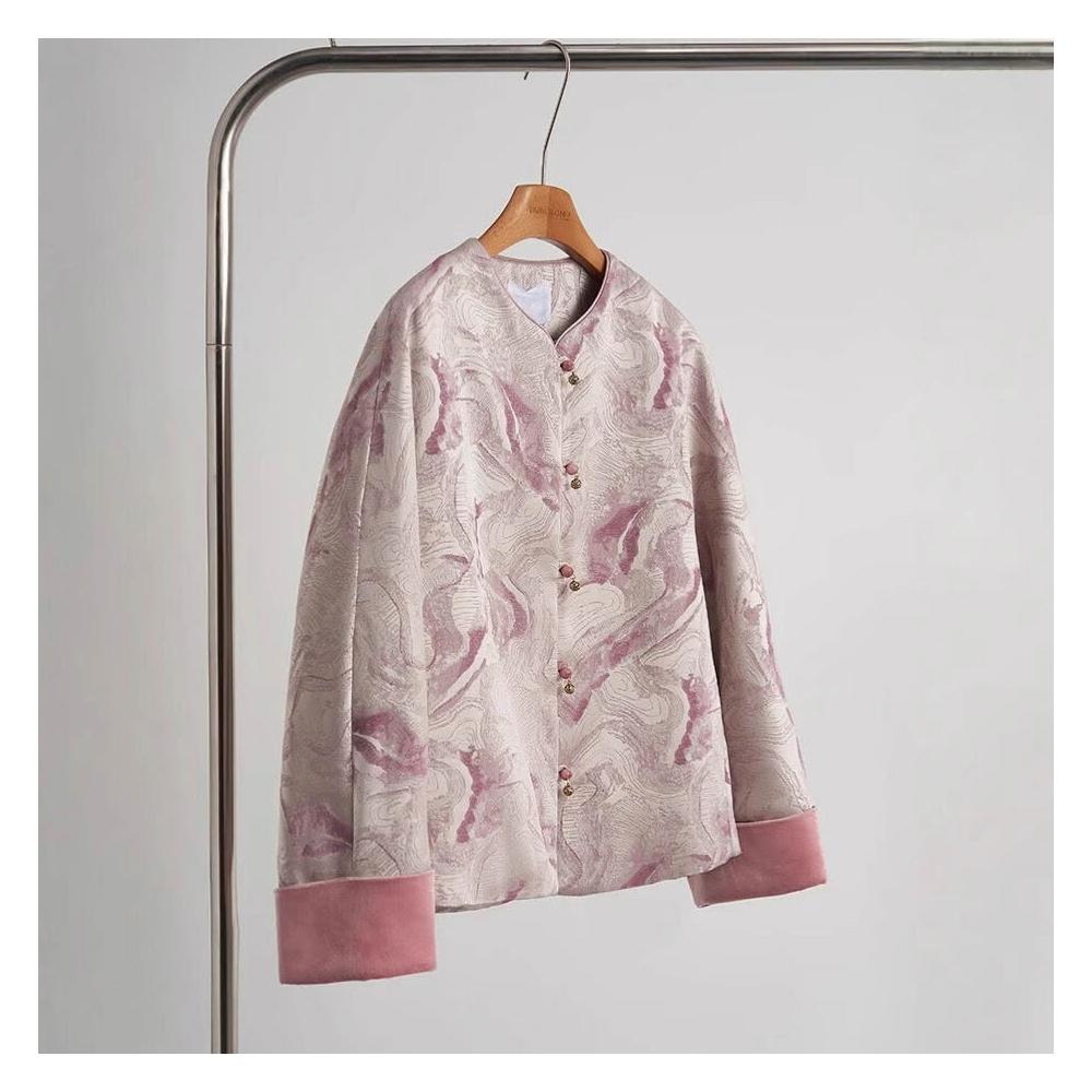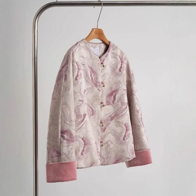 人絲色織提花新中式外套女高級感輕國風上衣寬松顯瘦氣質春裝開衫
