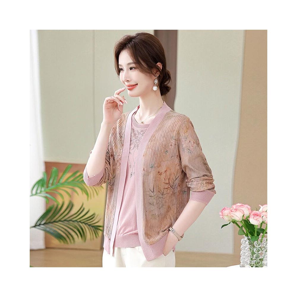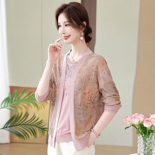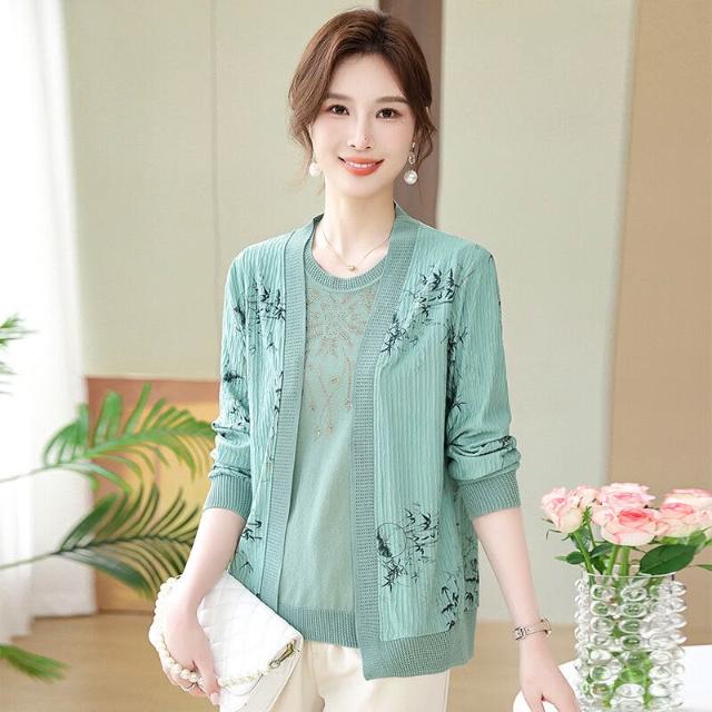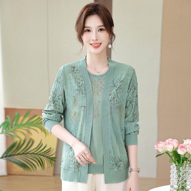 早春煥新 中年媽媽春秋薄款兩件套上衣服2025新款中老年人女裝秋季針織開衫