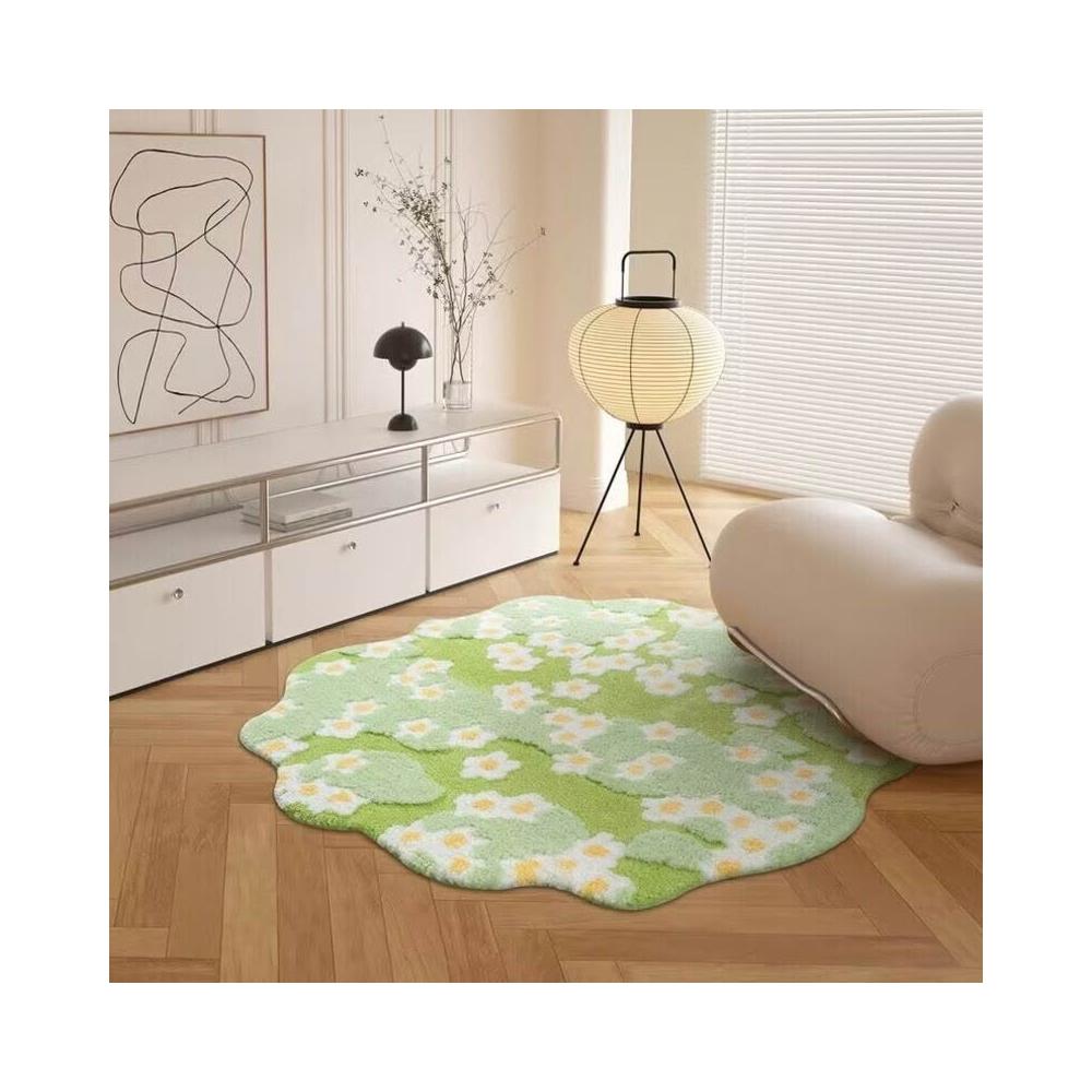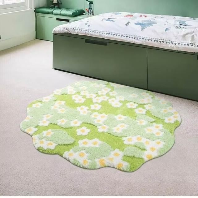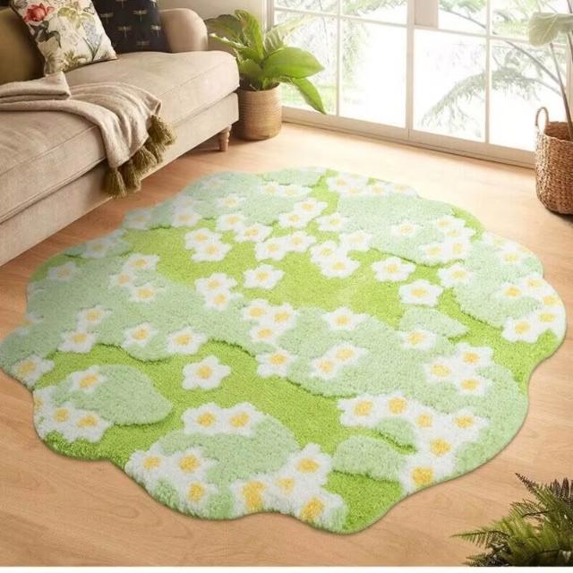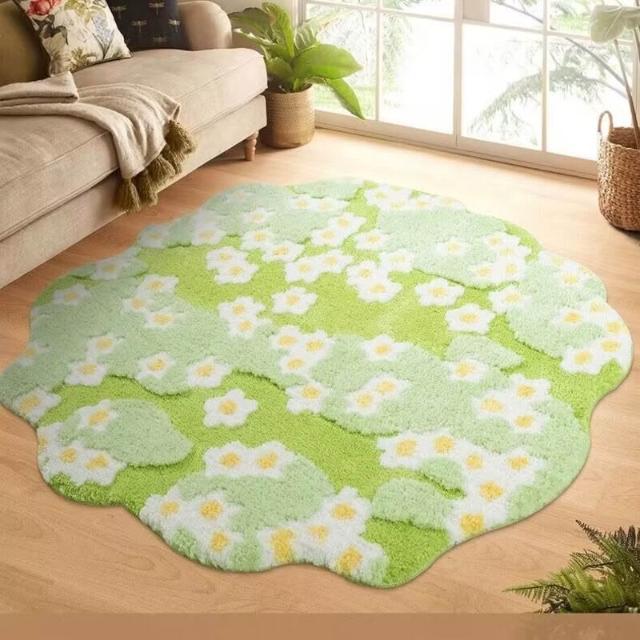 沐歆優選 異形小花家用植絨地毯兒童房加厚毛絨地墊客廳臥室床邊防滑地毯