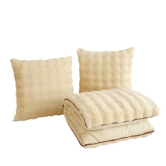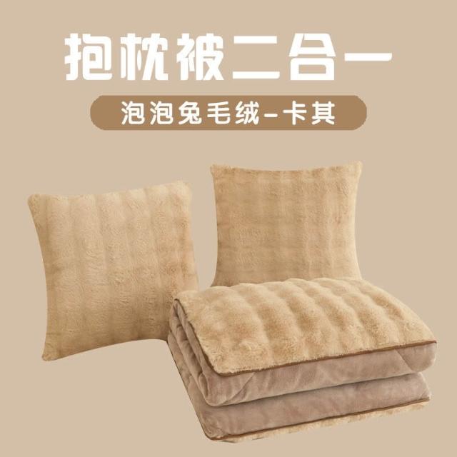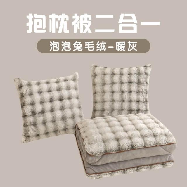 沐歆優選 新款泡泡兔毛絨抱枕被辦公午睡純色車用沙發兩用二合一靠墊被