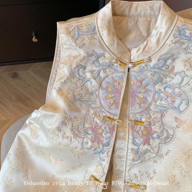 香槟色新中式刺繡盤扣馬甲女2025春夏新款國風高級感氣質立領背心