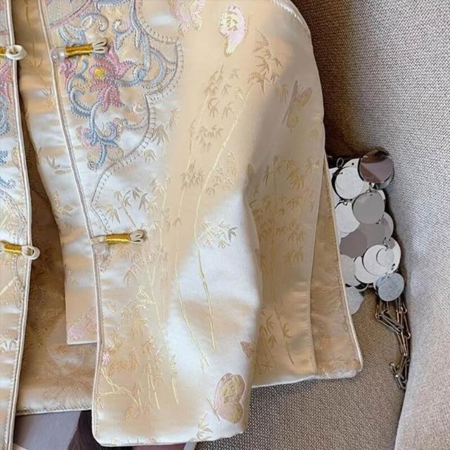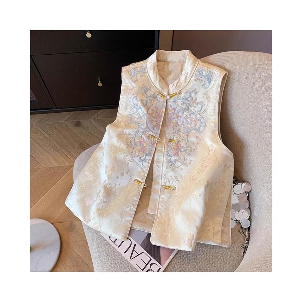 香槟色新中式刺繡盤扣馬甲女2025春夏新款國風高級感氣質立領背心