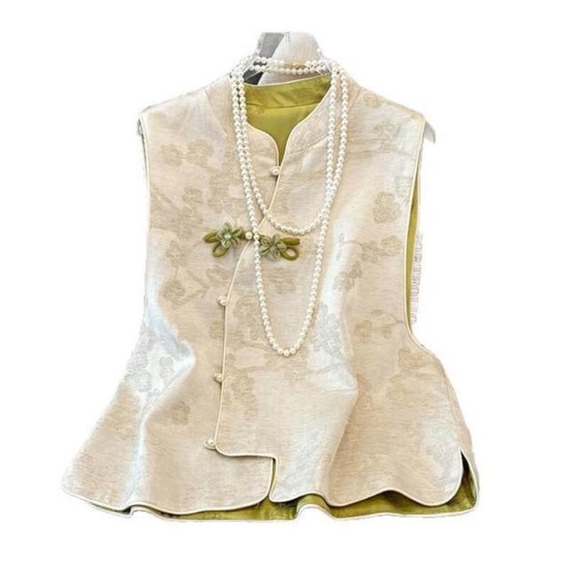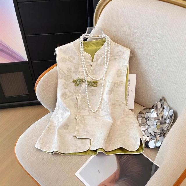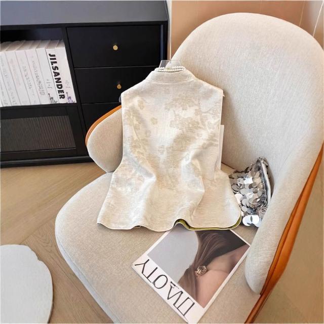 國風馬甲女春秋2025新款氣質提花圓領高級感中國風新中式上衣薄款