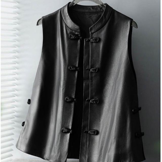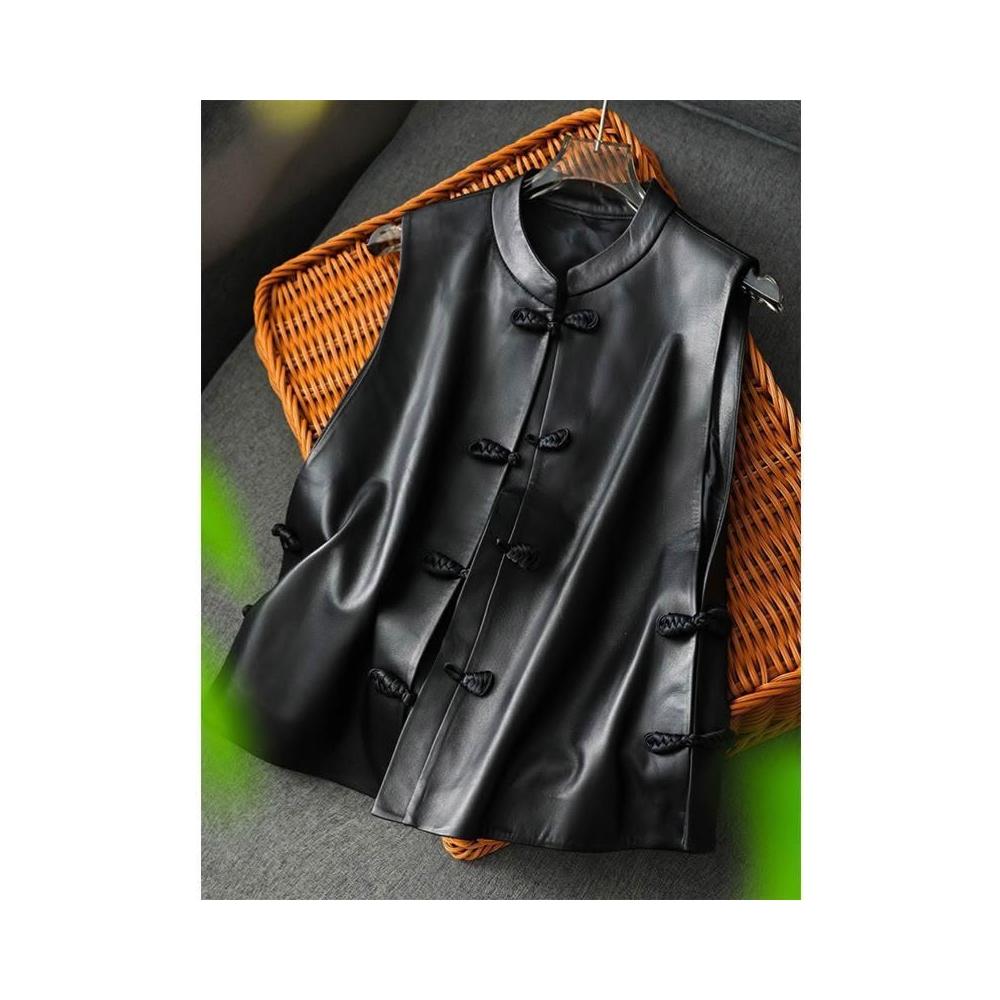 短款皮衣馬夾新中式盤扣國風立領無袖側開叉馬甲坎肩背心外套女