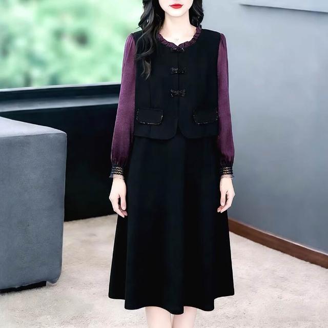 沐歆 2026春季新款復古盤扣新國風十三行女裝假兩件套大碼寬松連衣裙子