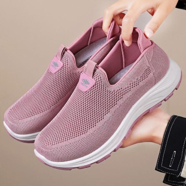 沐歆 中老年健步鞋女鞋 老北京布鞋輕便透氣網面飛織鞋子 軟底平底鞋休閑鞋運動鞋