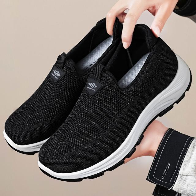 沐歆 中老年健步鞋女鞋 老北京布鞋輕便透氣網面飛織鞋子 軟底平底鞋休閑鞋運動鞋