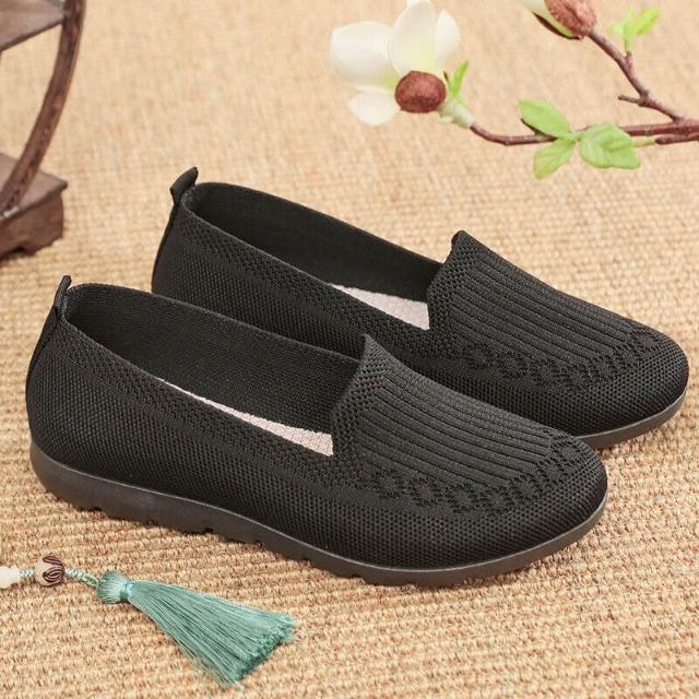 春夏老北京布鞋女鞋透氣飛織網面鞋防滑平底中老年媽媽鞋淺口單鞋