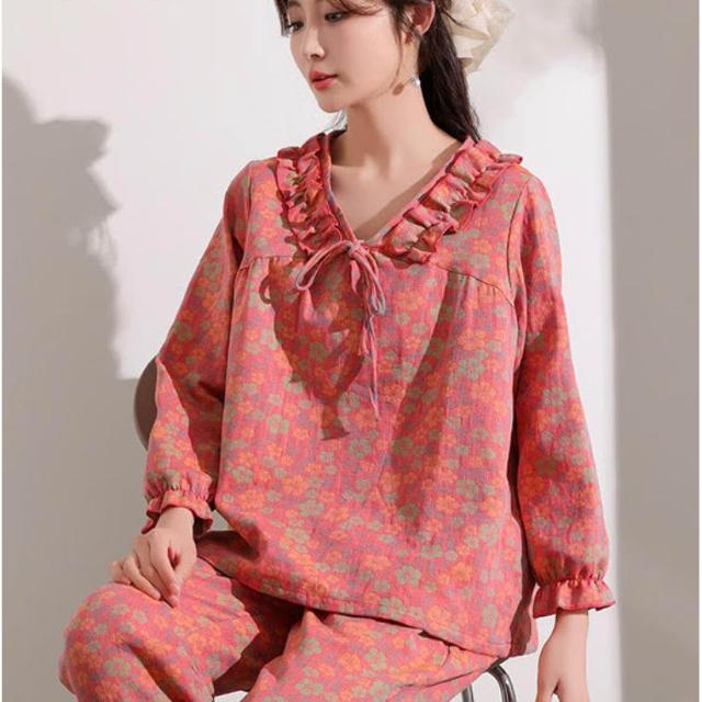 沐歆 復古新中式國風春夏薄款純棉睡衣女 色織提花雙層紗布收口睡衣 長袖長褲可外穿家居服