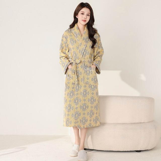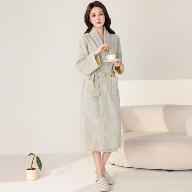 雙層紗布浴袍春夏薄款酒店情侶睡袍男女睡衣吸水輕薄浴衣一件代發