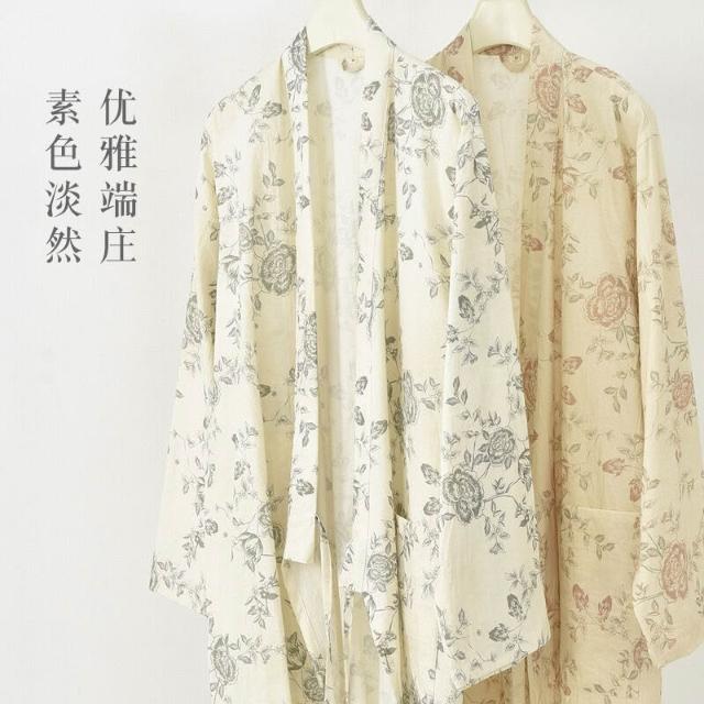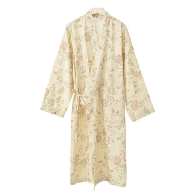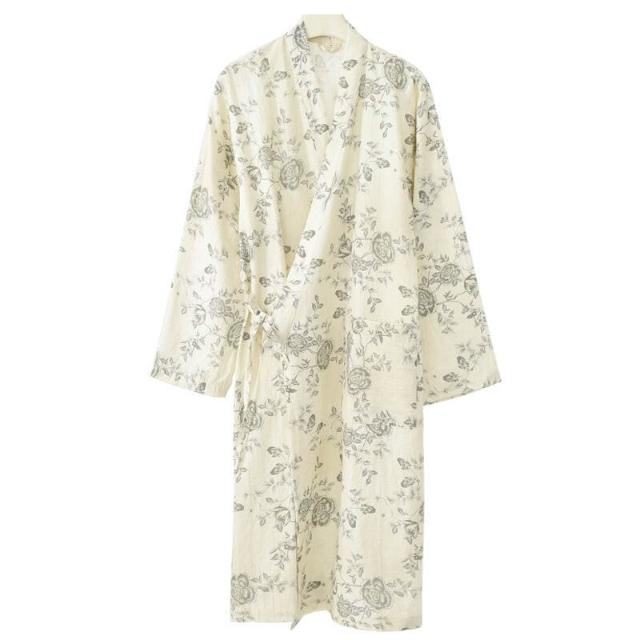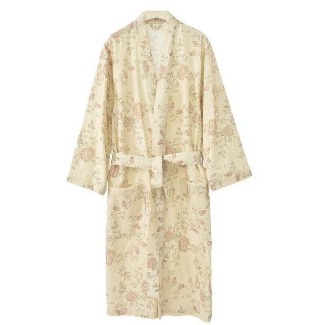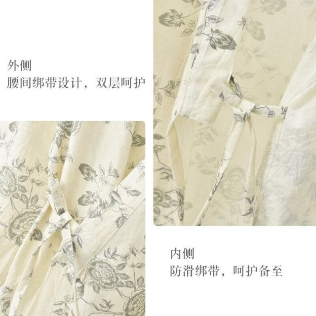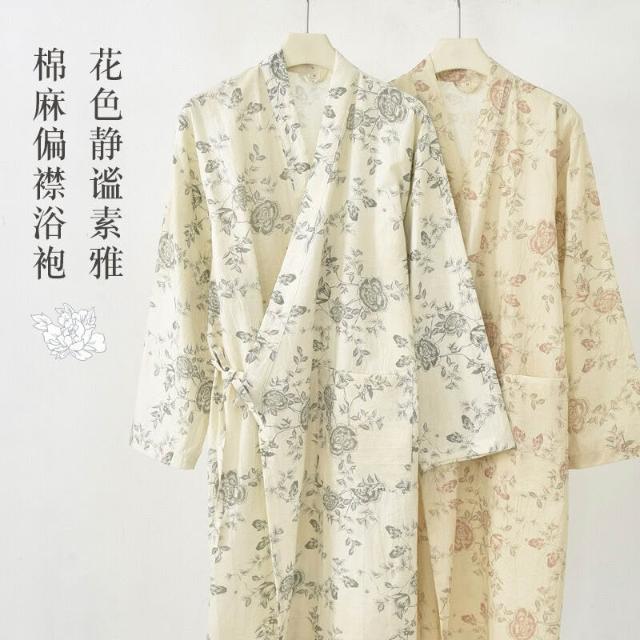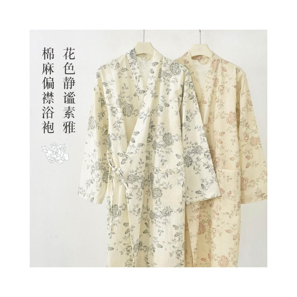 日系睡裙睡袍女夏季純棉紗布偏襟睡衣春秋浴衣家居服棉麻漢服浴袍