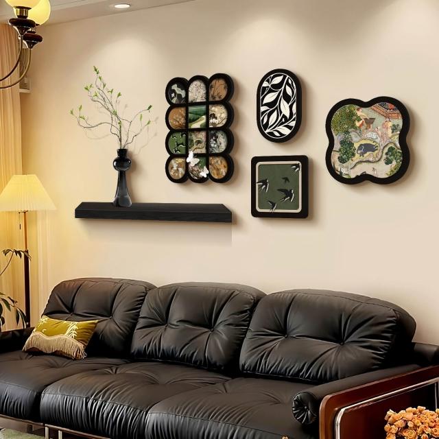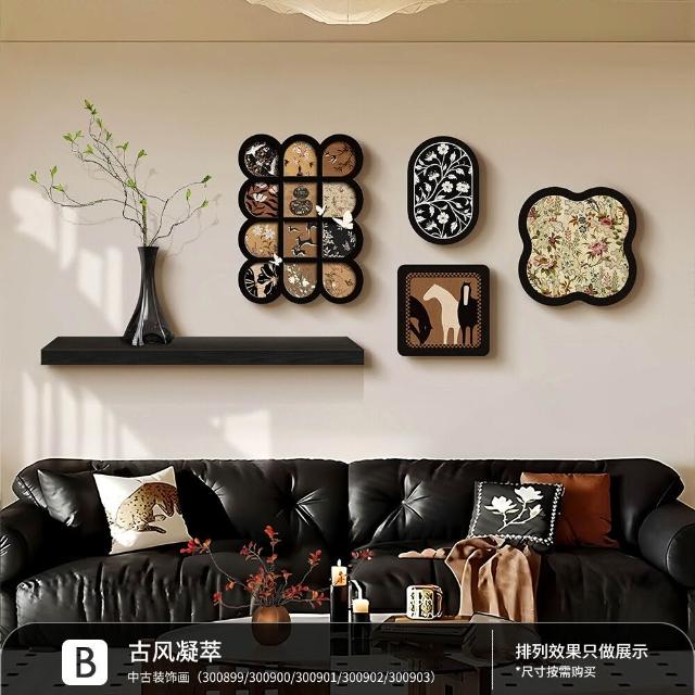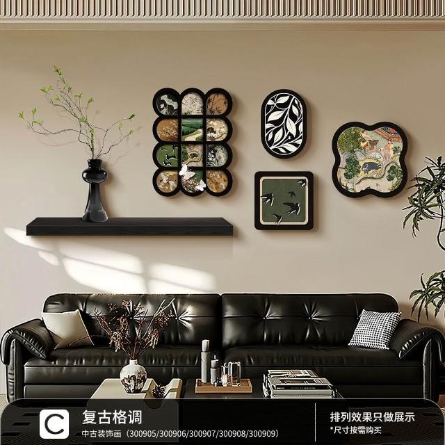 中古風客廳裝飾畫法式復古高級感沙發背景墻掛畫寓意好的組合壁畫