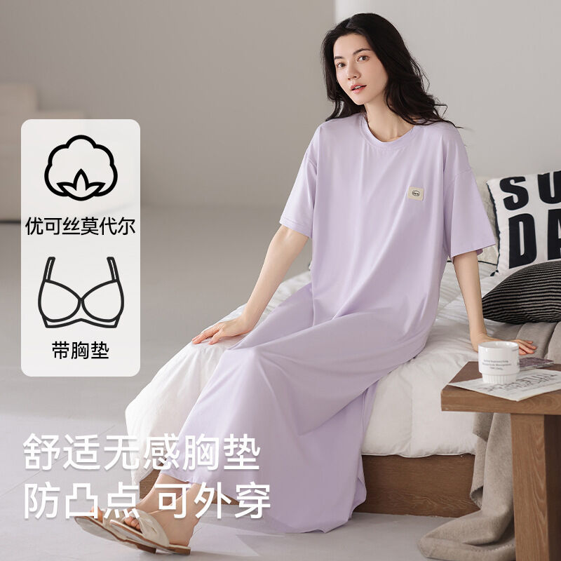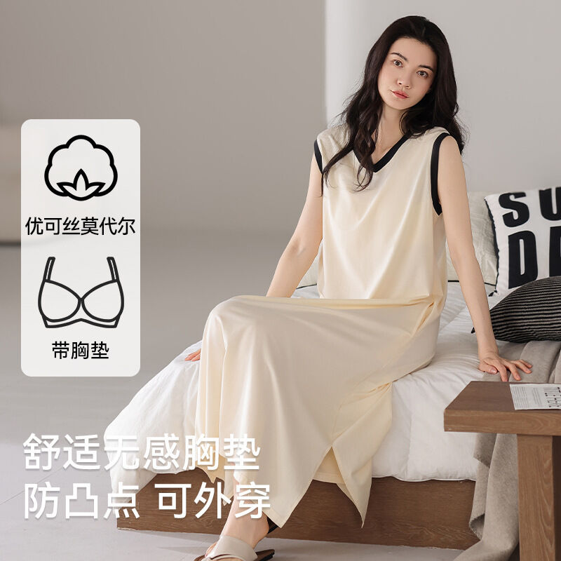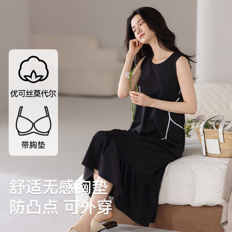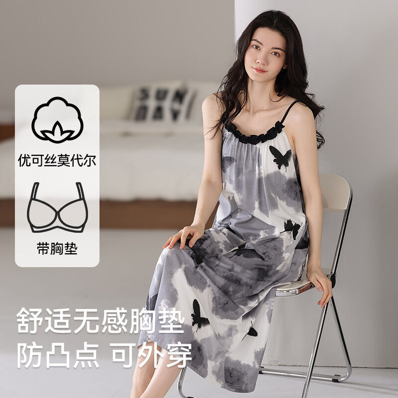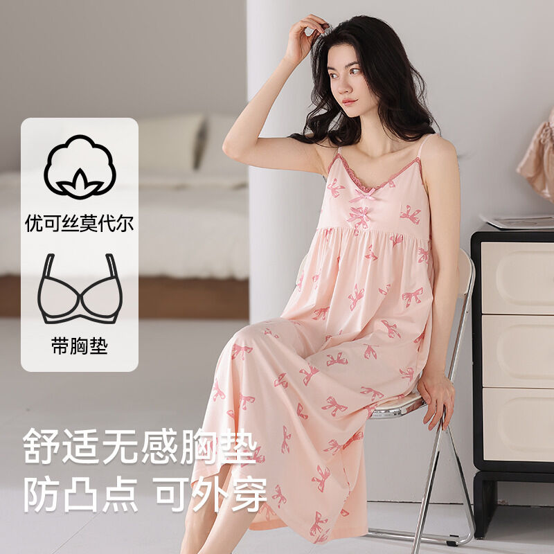 莫代爾睡裙女士夏季新款薄款吊帶棉綢睡衣帶胸墊連衣裙居家服夏款