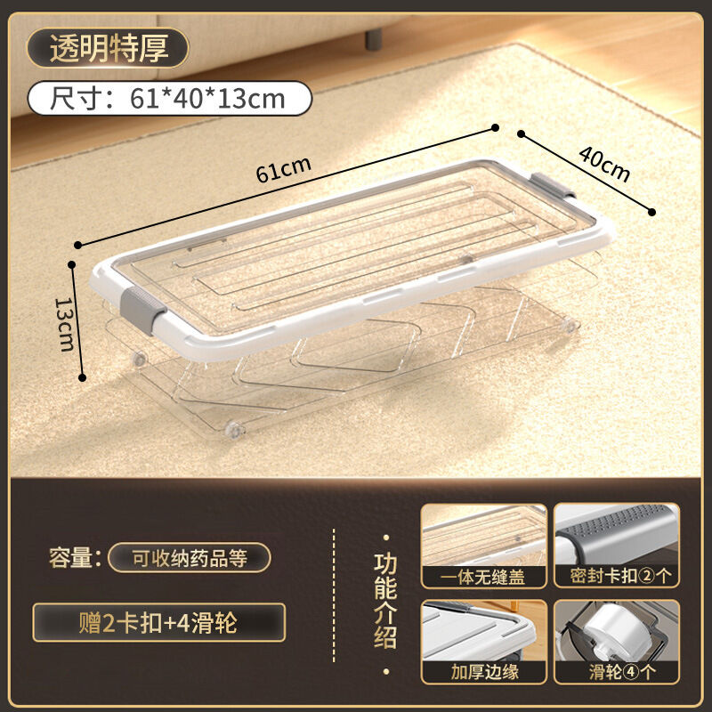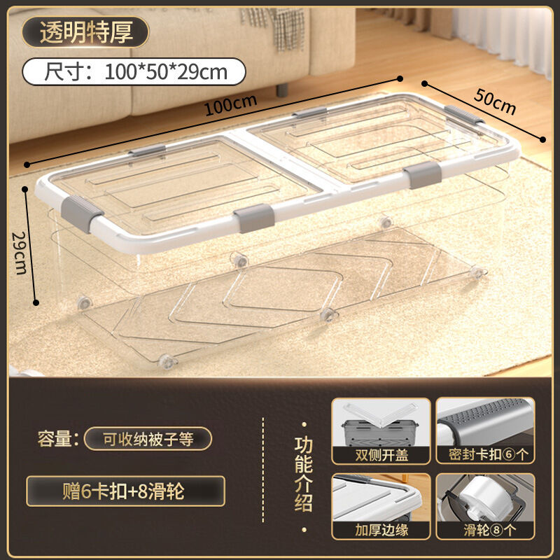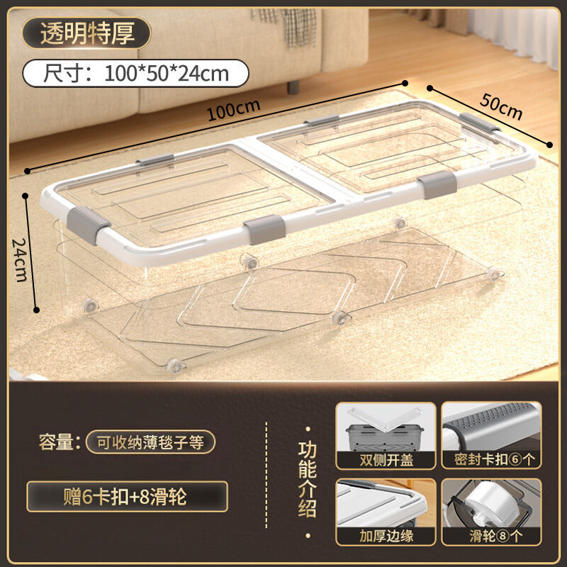 床底收納箱扁平帶滑輪床下收納神器大容量超大透明衣服宿舍儲物箱