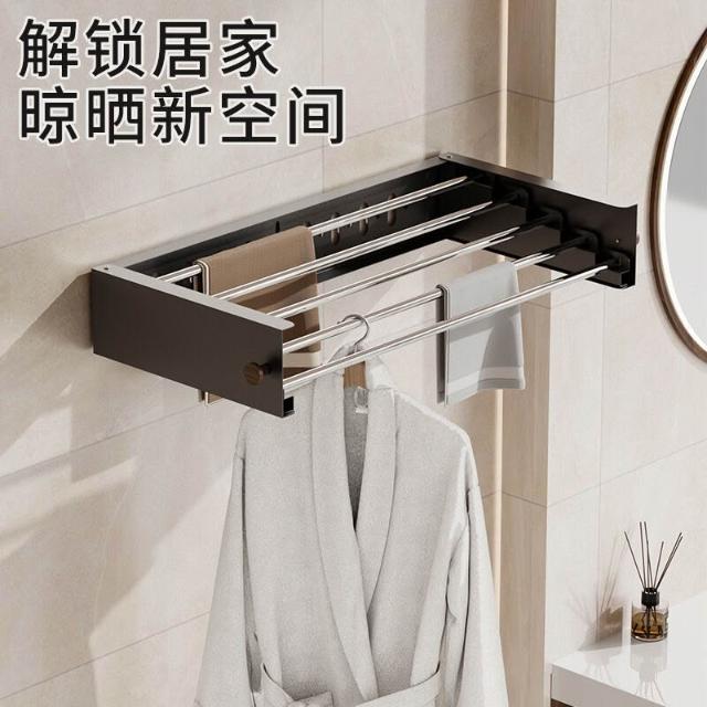 貝石隱形折疊晾衣架陽臺室內壁掛曬衣神器衛生間掛衣架晾曬架收納