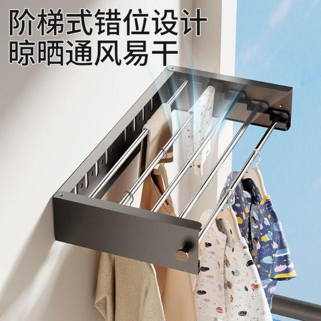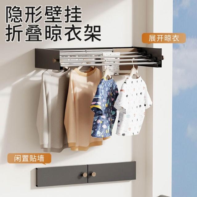 貝石隱形折疊晾衣架陽臺室內壁掛曬衣神器衛生間掛衣架晾曬架收納