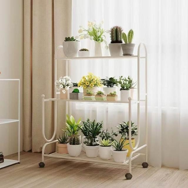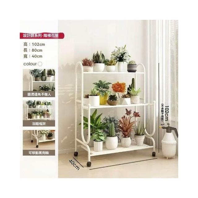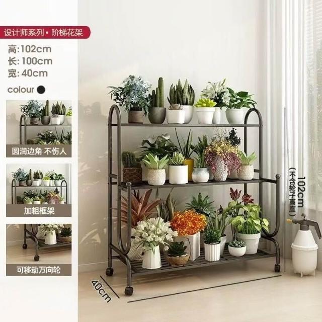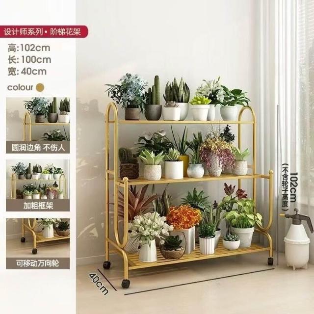 沐歆 鐵藝階梯花架 可移動多肉花架子 陽臺置物架 多層客廳落地式花架帶輪