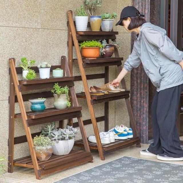 花架陽臺置物架實木客廳落地式折疊花架多肉花盆架戶外防腐木花架