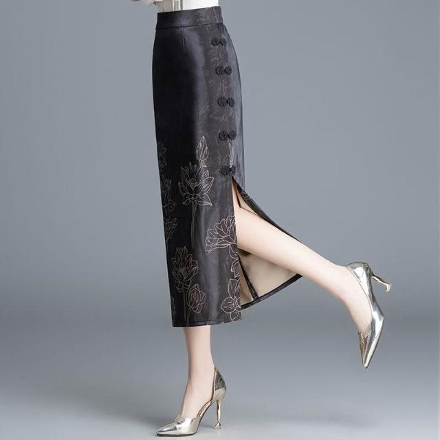 復古媽媽半身裙中國風直筒包臀裙顯瘦女裙子2025春夏新款一步裙