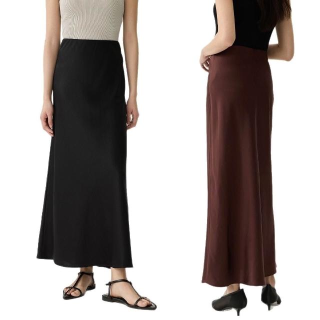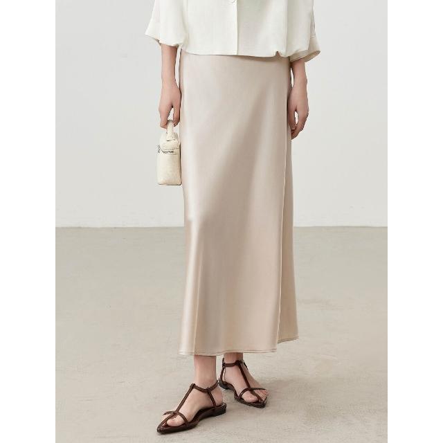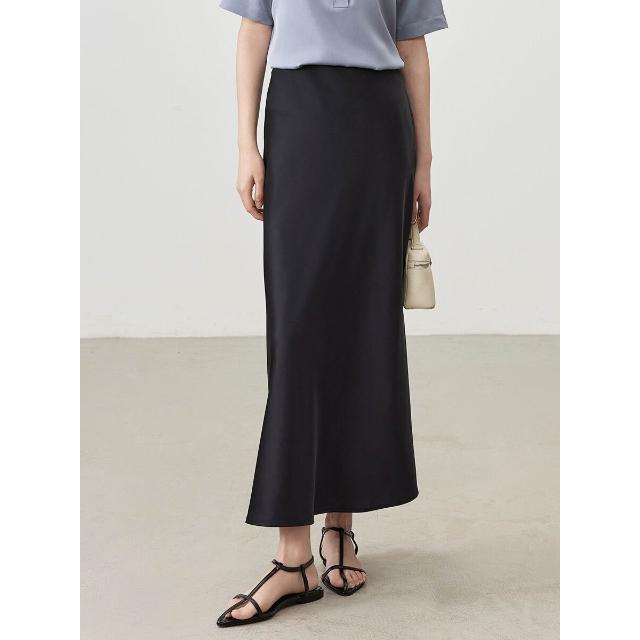 夏季新品真絲半身裙中長款松緊腰高級感桑蠶絲真絲半裙高腰包臀裙