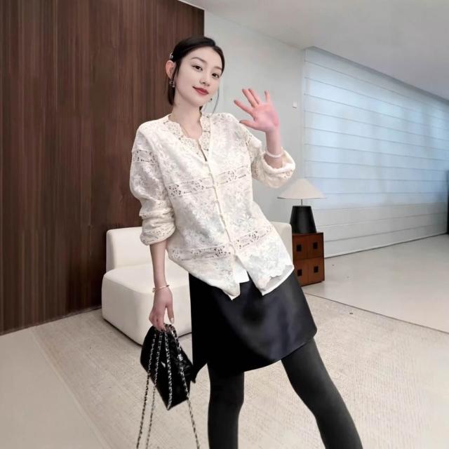 法式溫柔風镂空刺繡V領蕾絲襯衫女2026春新款顯瘦百搭打底衫上衣