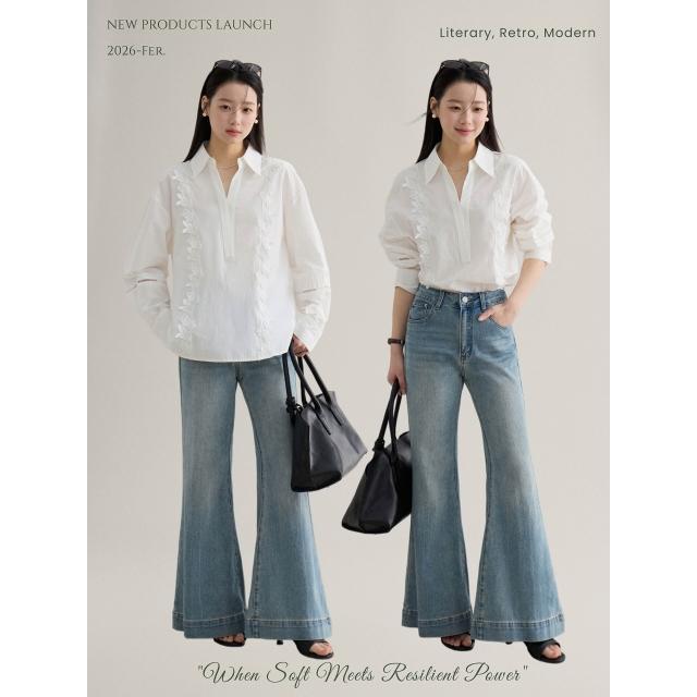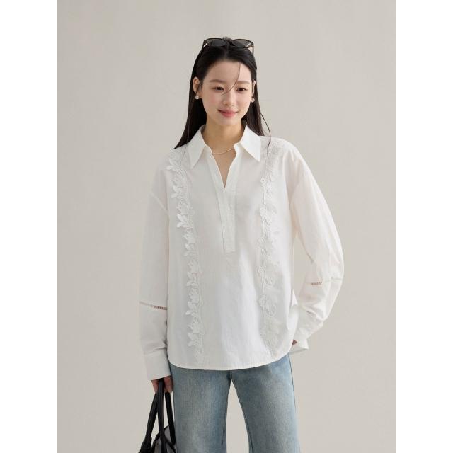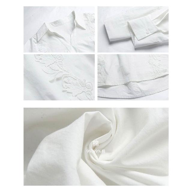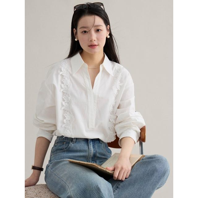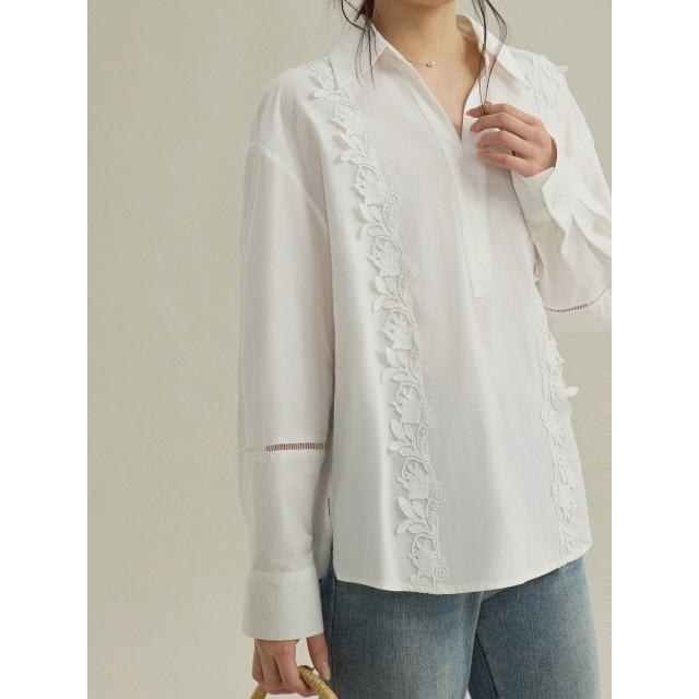 歌銘法式復古镂空繡花翻領襯衫女裝2026春季新款白襯衣S1058F