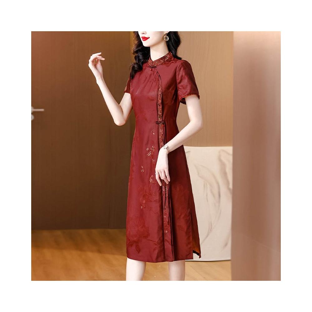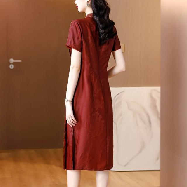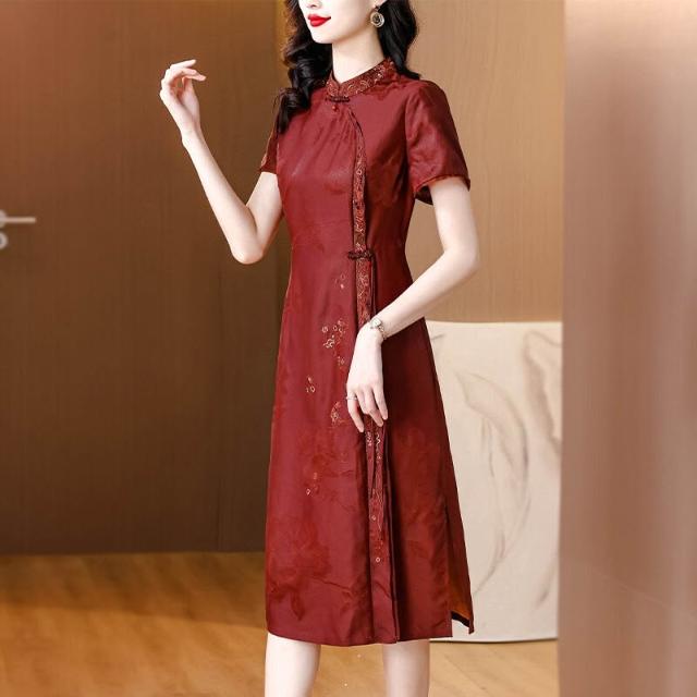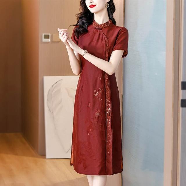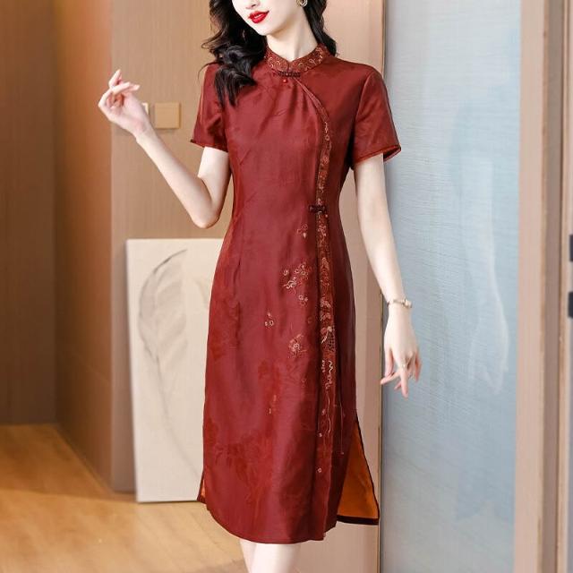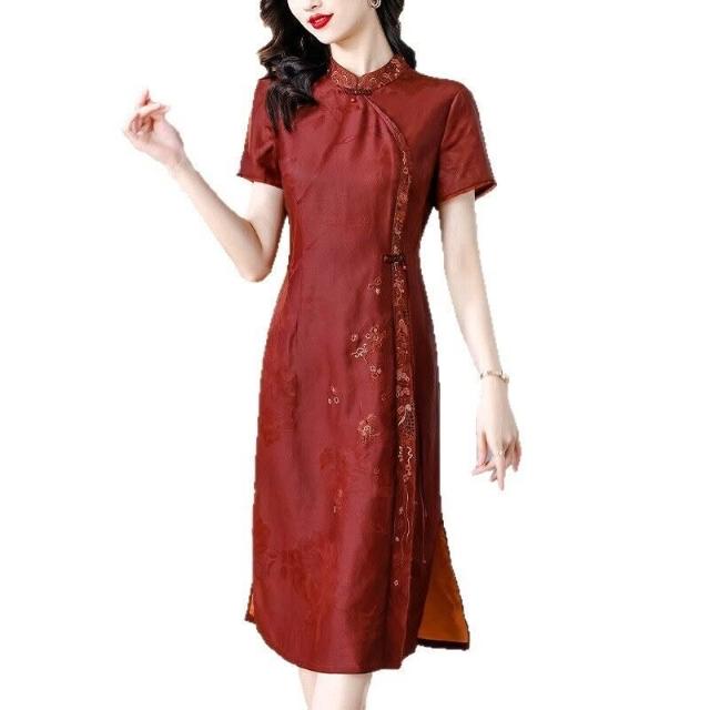 真絲香雲紗連衣裙女廣州高端品牌紅雲紗改良旗袍禮服2024春夏新款