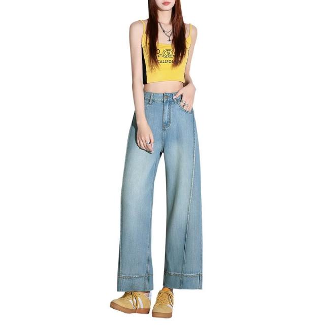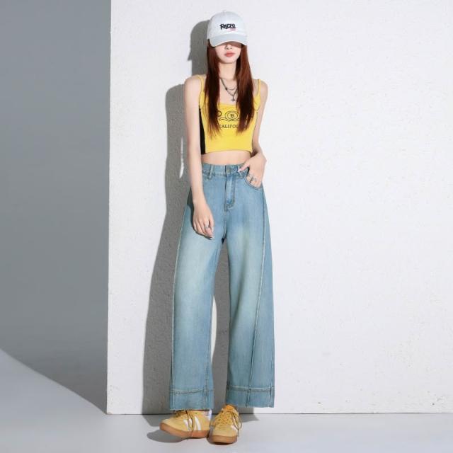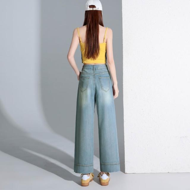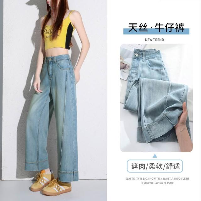 淺色天絲闊腿牛仔褲女新款夏薄款萊賽爾高腰垂感九分直筒褲子