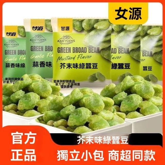 熱賣中嘴饞精選【甘源】翡翠無殼綠蠶豆芥末味小吃雲南保山綠心去殼蘭花豆酥脆小零食