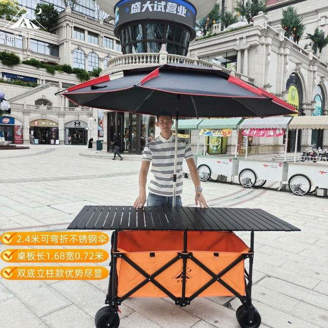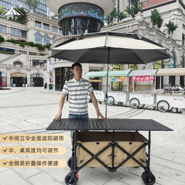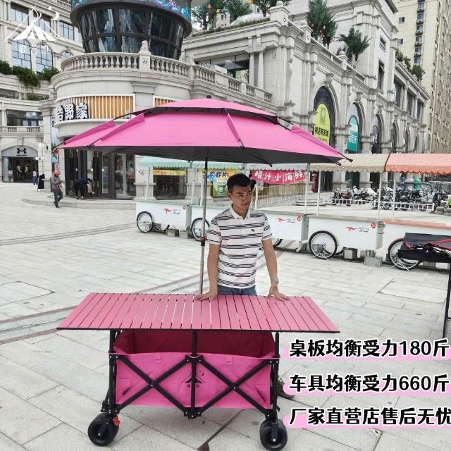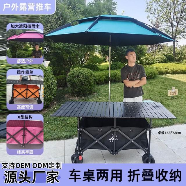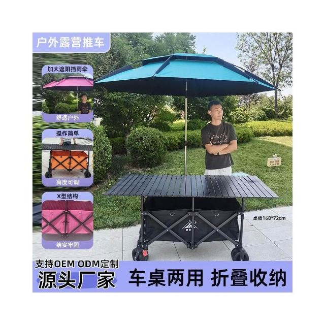 折疊露營車 168*72可升降桌板 戶外夜市擺攤推車 營地便攜聚攏小拉車