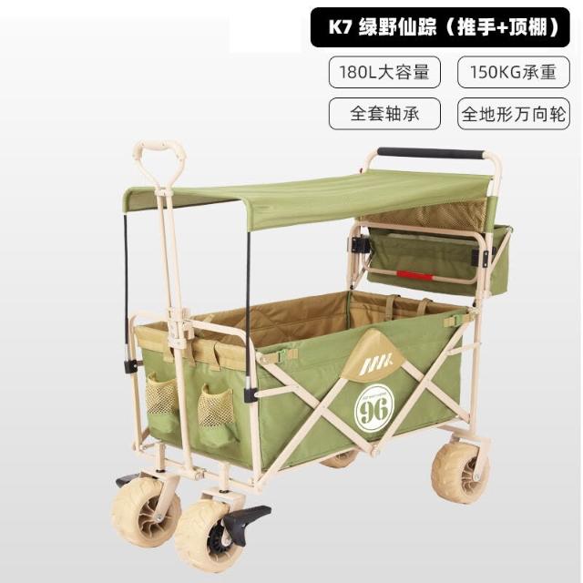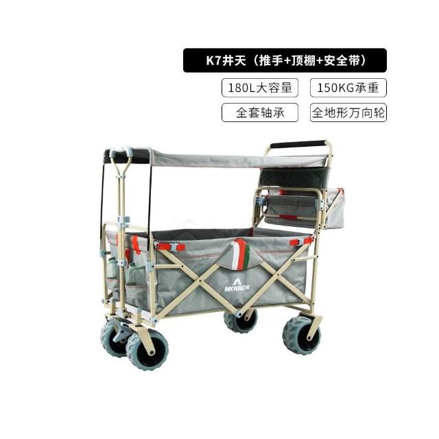 戶外帳篷野營折疊車 營地野餐拉車 戶外露營一體式遮陽篷推車