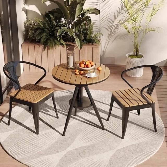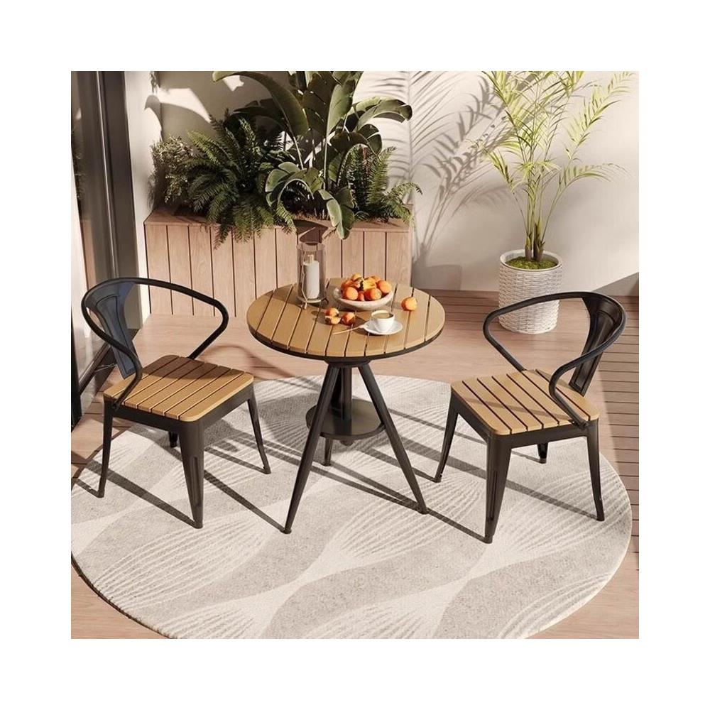 戶外休閑桌椅 露天庭院防腐木室外餐桌椅組合 家用可升降陽臺方圓桌