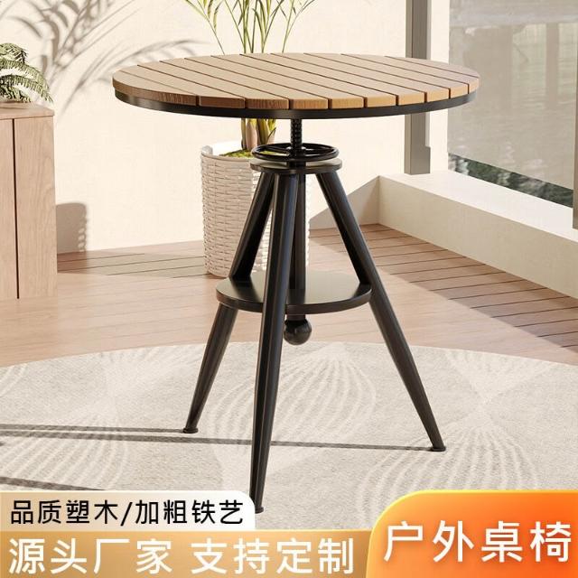 戶外休閑桌椅 露天庭院防腐木室外餐桌椅組合 家用可升降陽臺方圓桌