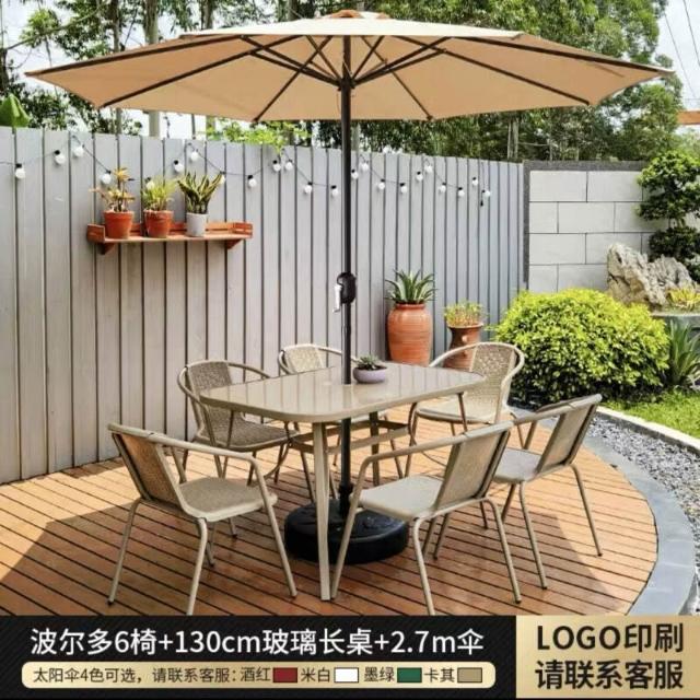 戶外庭院桌椅傘組合 帶遮陽傘花園室外 休閑露天外擺奶茶咖啡廳陽臺
