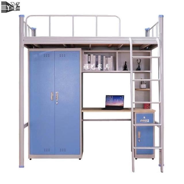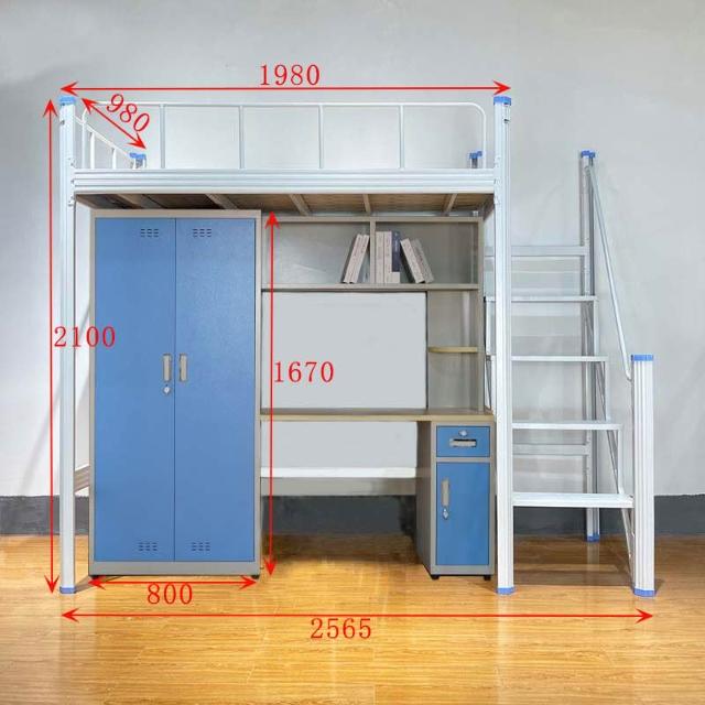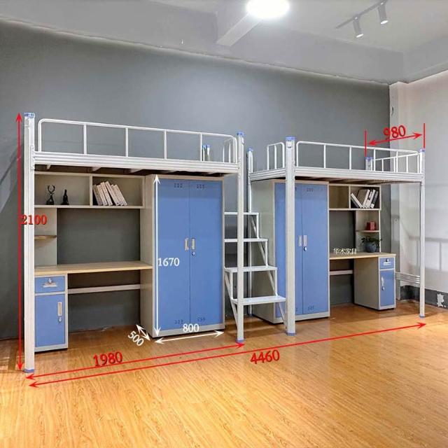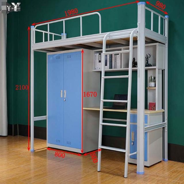 上床下桌組合鐵架床 員工宿舍上鋪下櫃連體床 步梯公寓床學生高低床