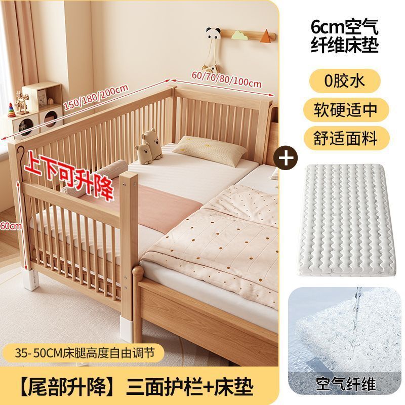 榉木拼接床 實木床 可升降護欄拼接大床 小孩床邊床