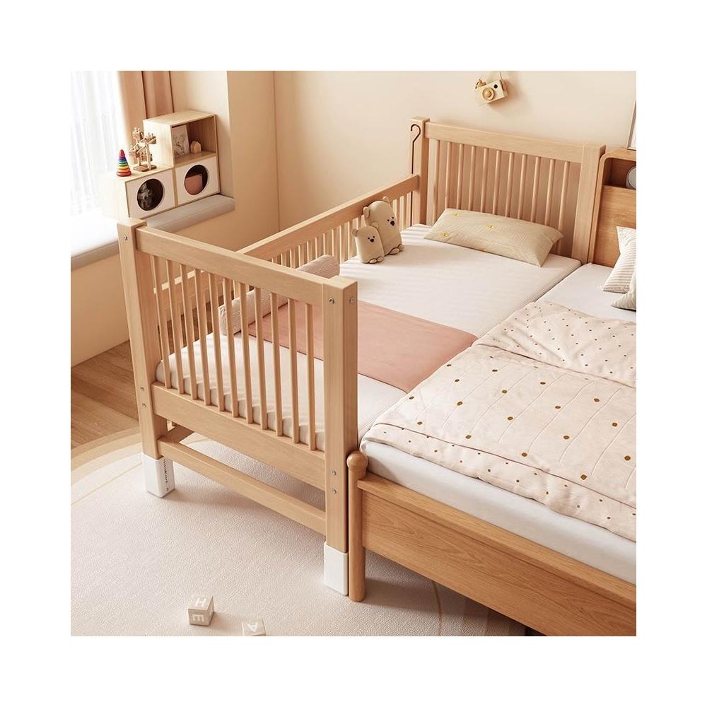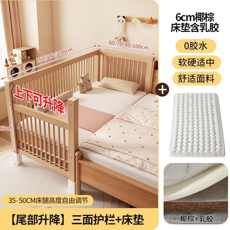 榉木拼接床 實木床 可升降護欄拼接大床 小孩床邊床