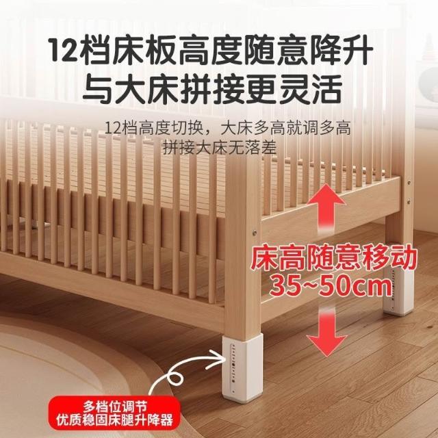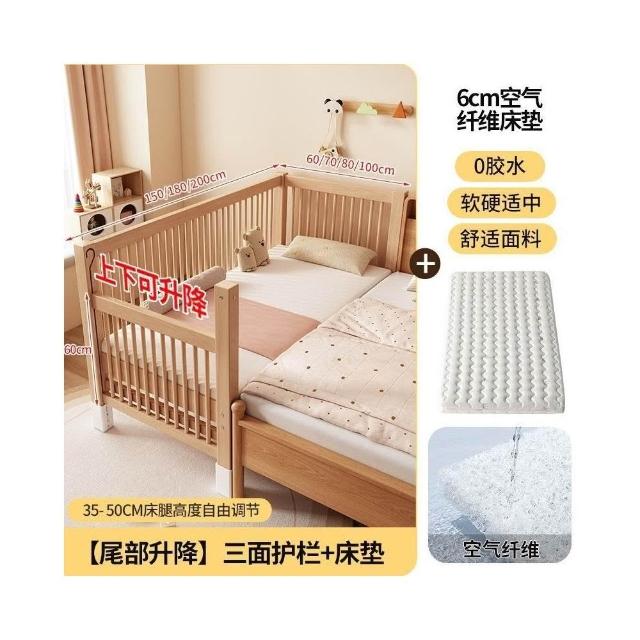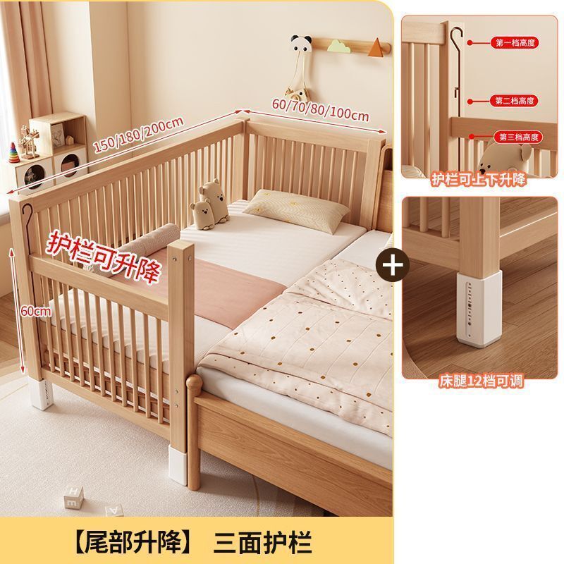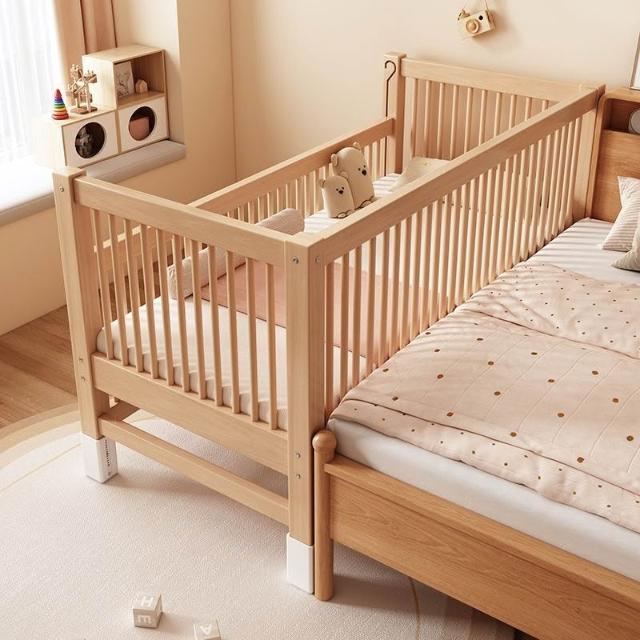 榉木拼接床 實木床 可升降護欄拼接大床 小孩床邊床