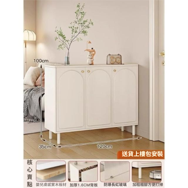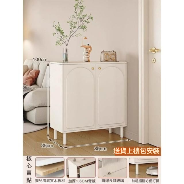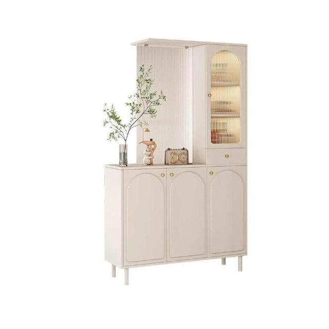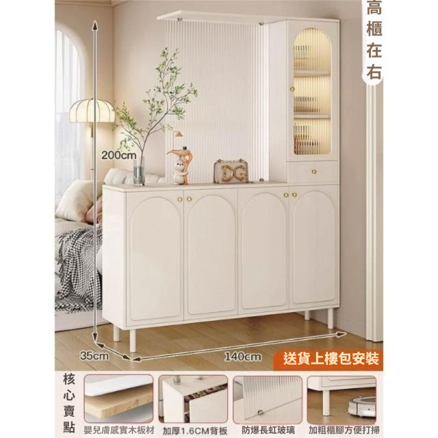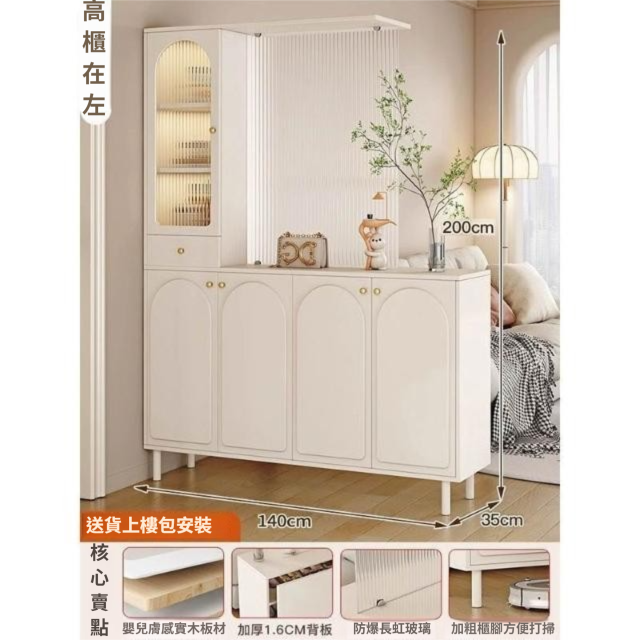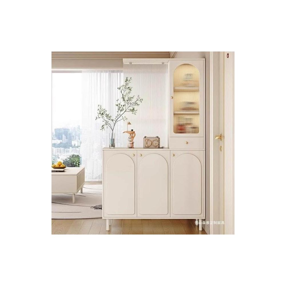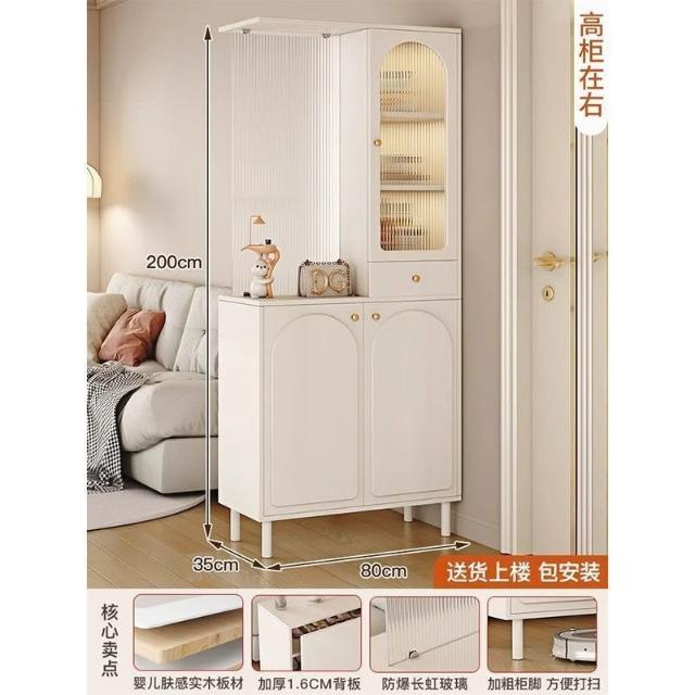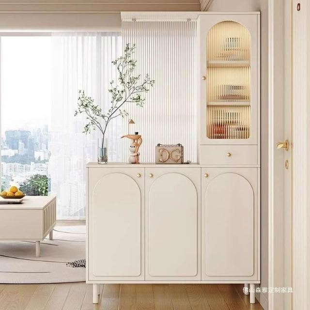 玄關櫃入戶客廳高酒櫃長虹玻璃鞋櫃屏風一體奶油風現代玄關隔斷櫃