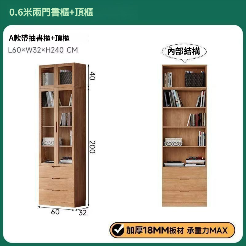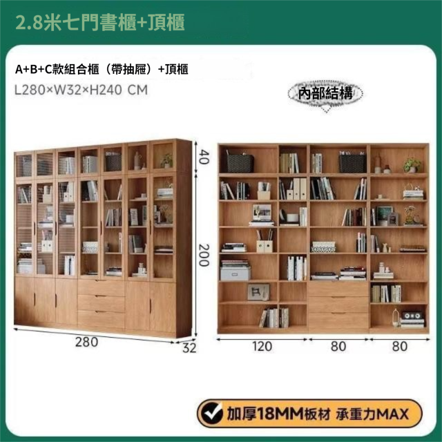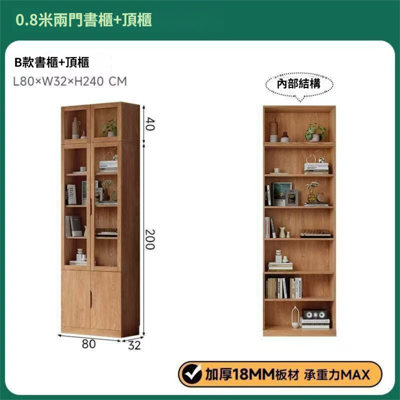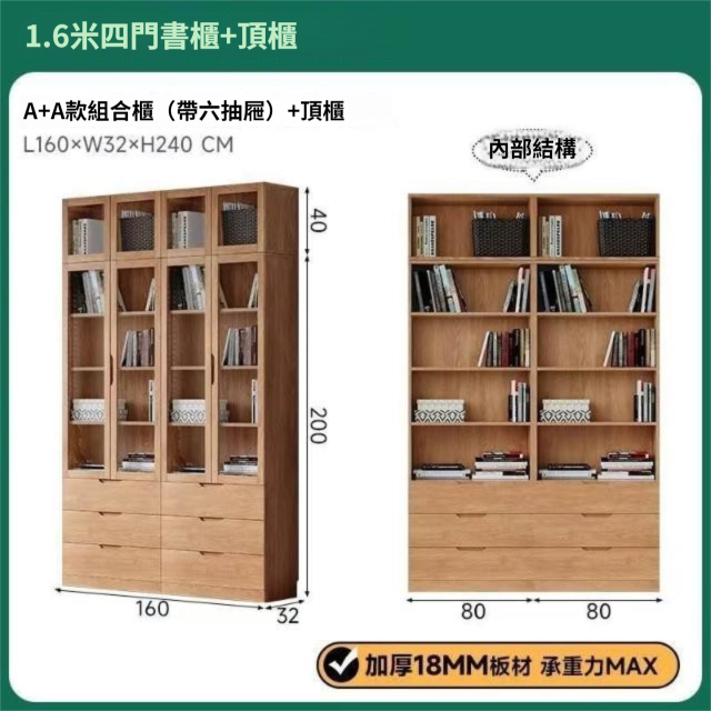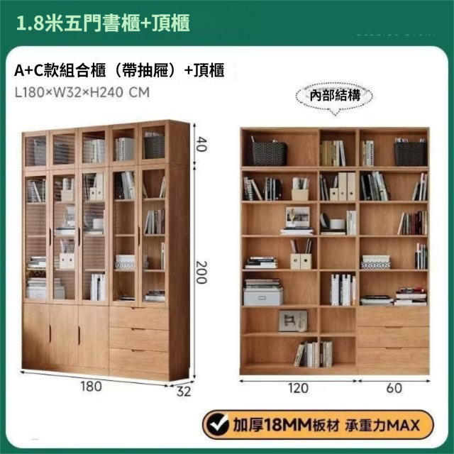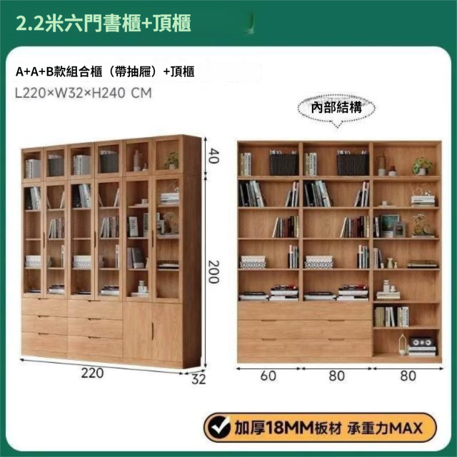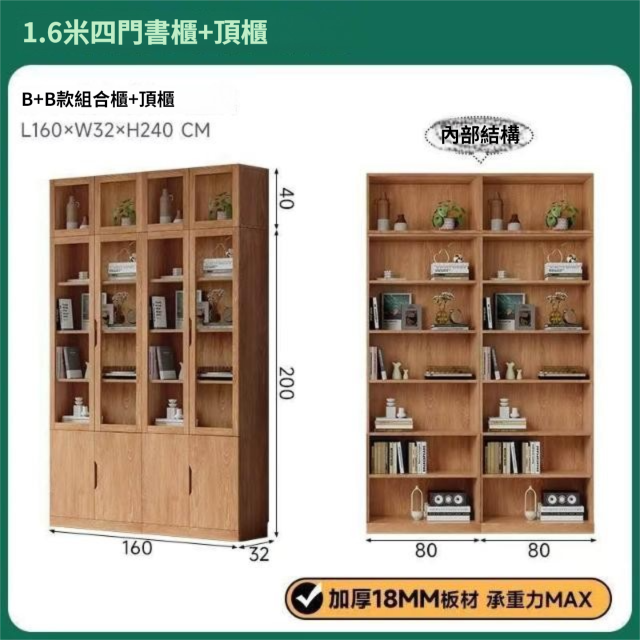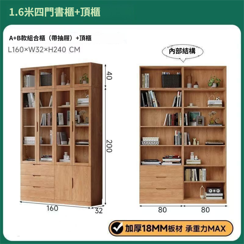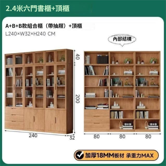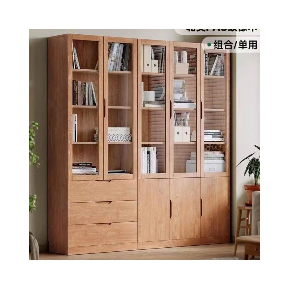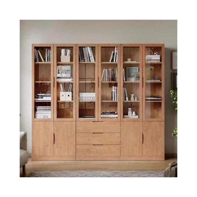 全實木客廳書櫃一體整墻玻璃門收納儲物展示櫃書房靠墻書架置物架