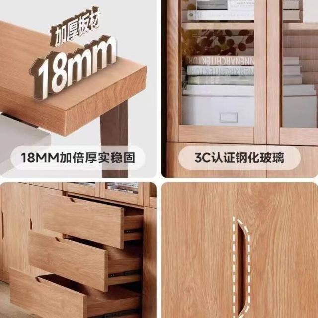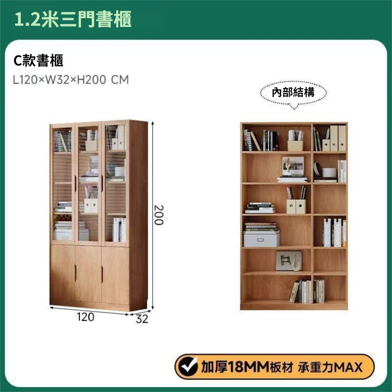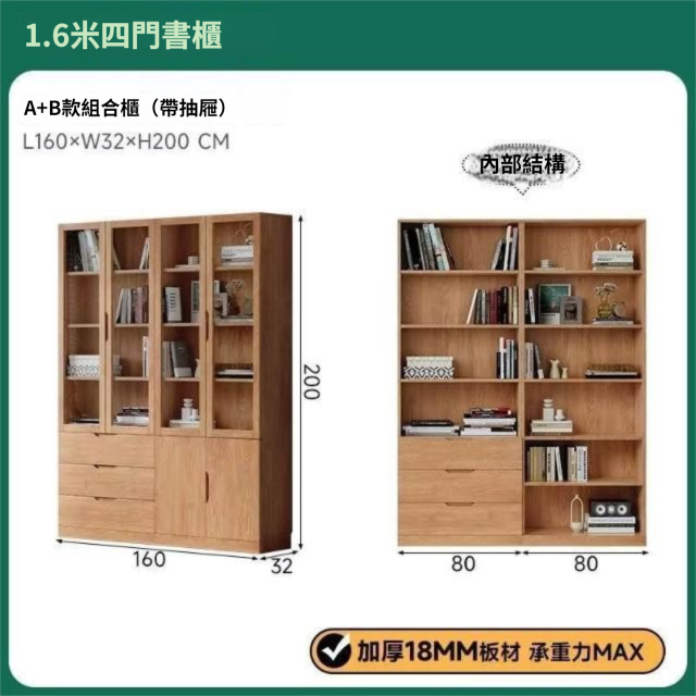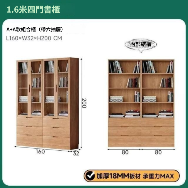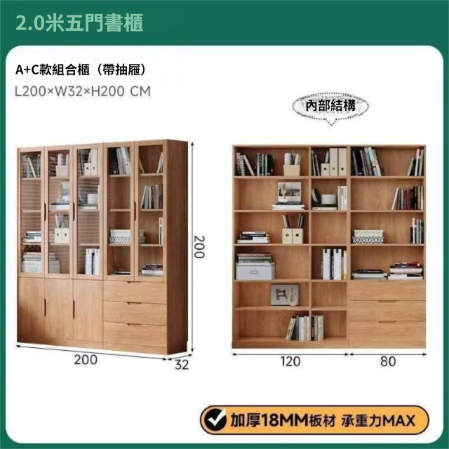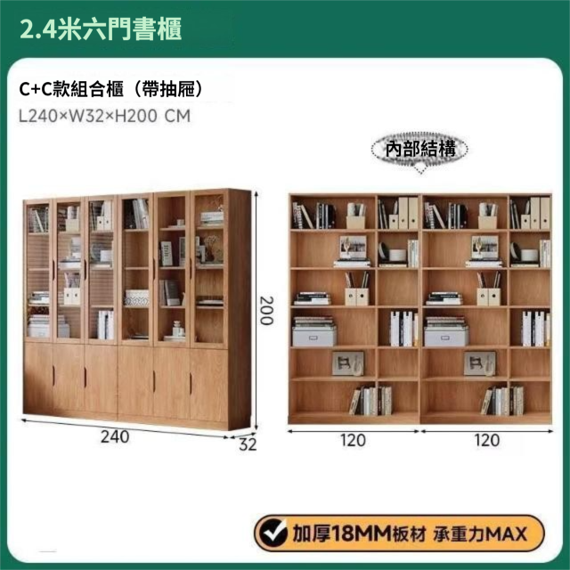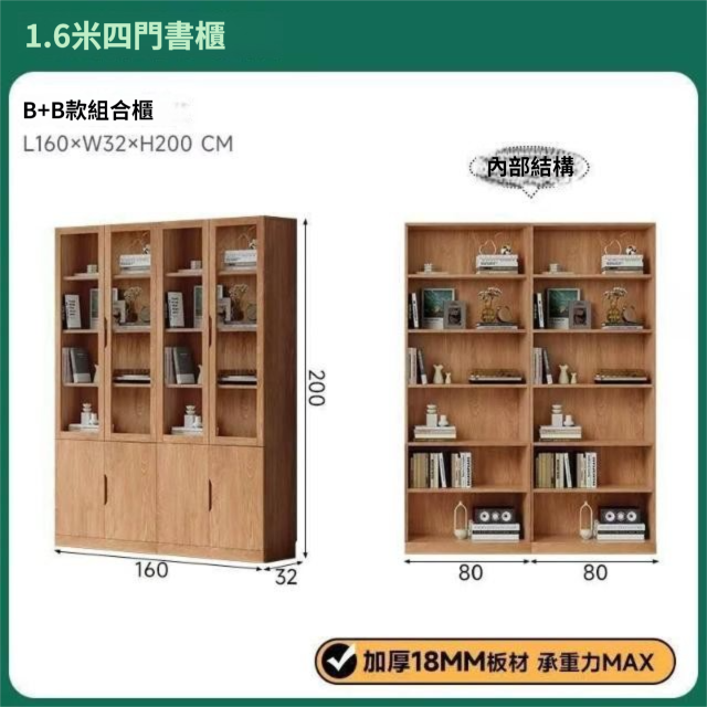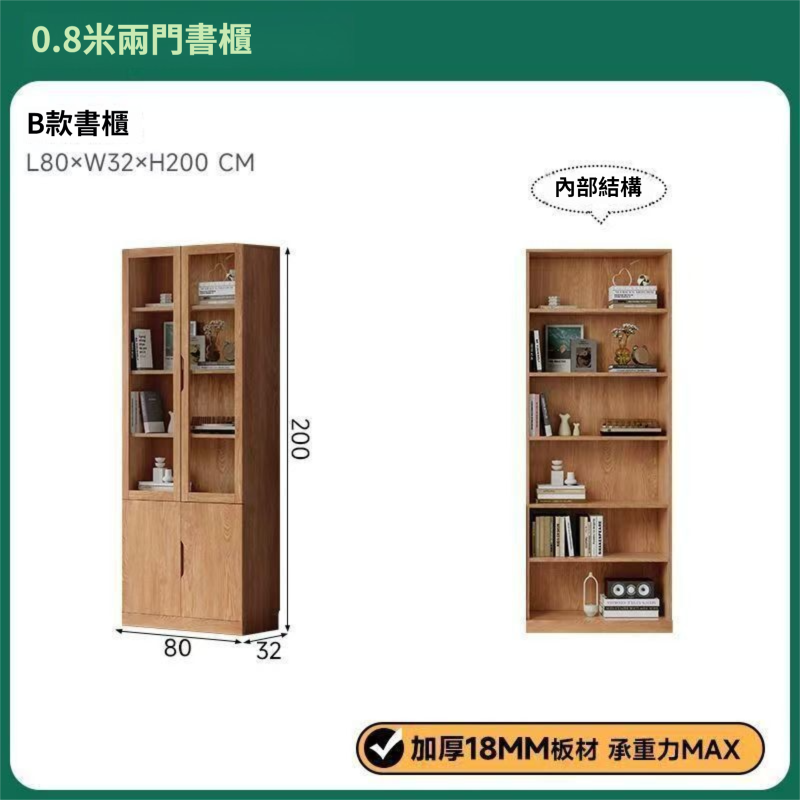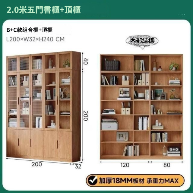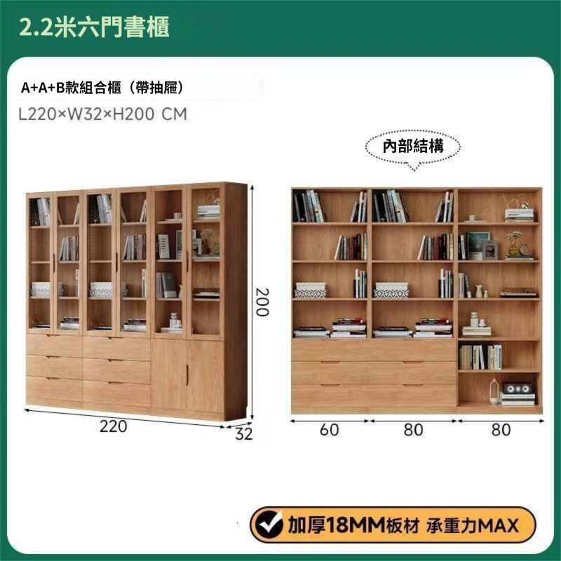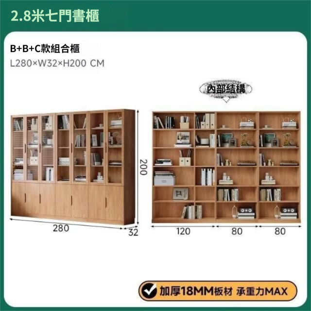 全實木客廳書櫃一體整墻玻璃門收納儲物展示櫃書房靠墻書架置物架