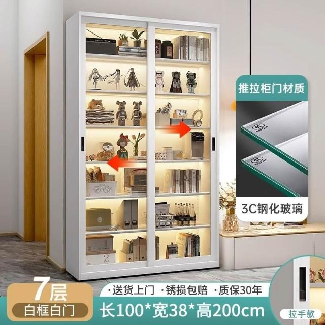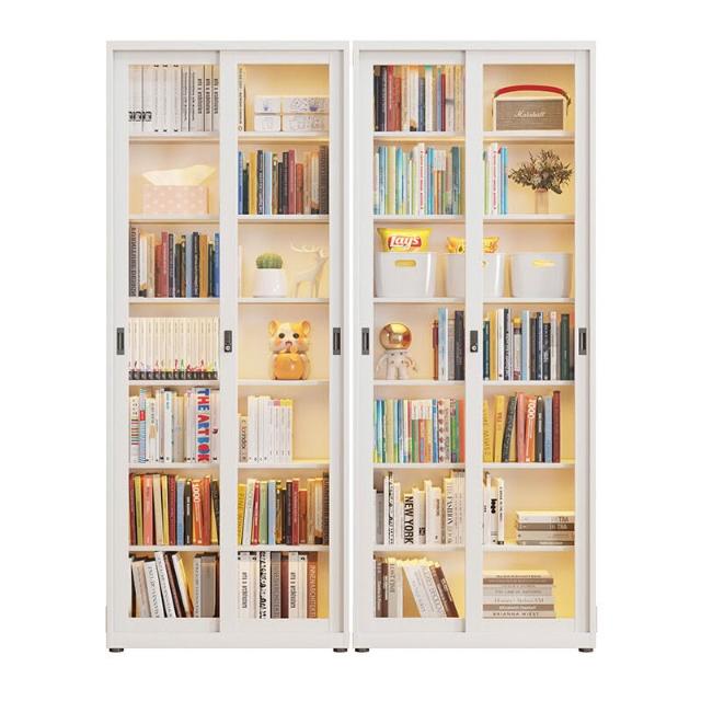 書櫃 推拉門玻璃客廳帶門一體式靠墻書架 落地家用多層放書本架
