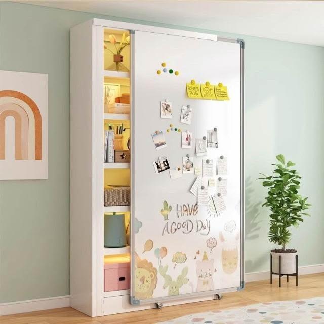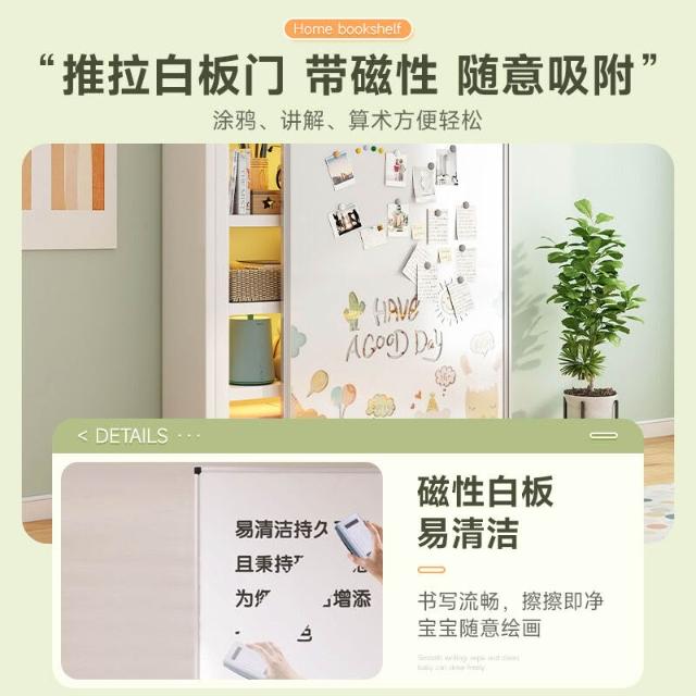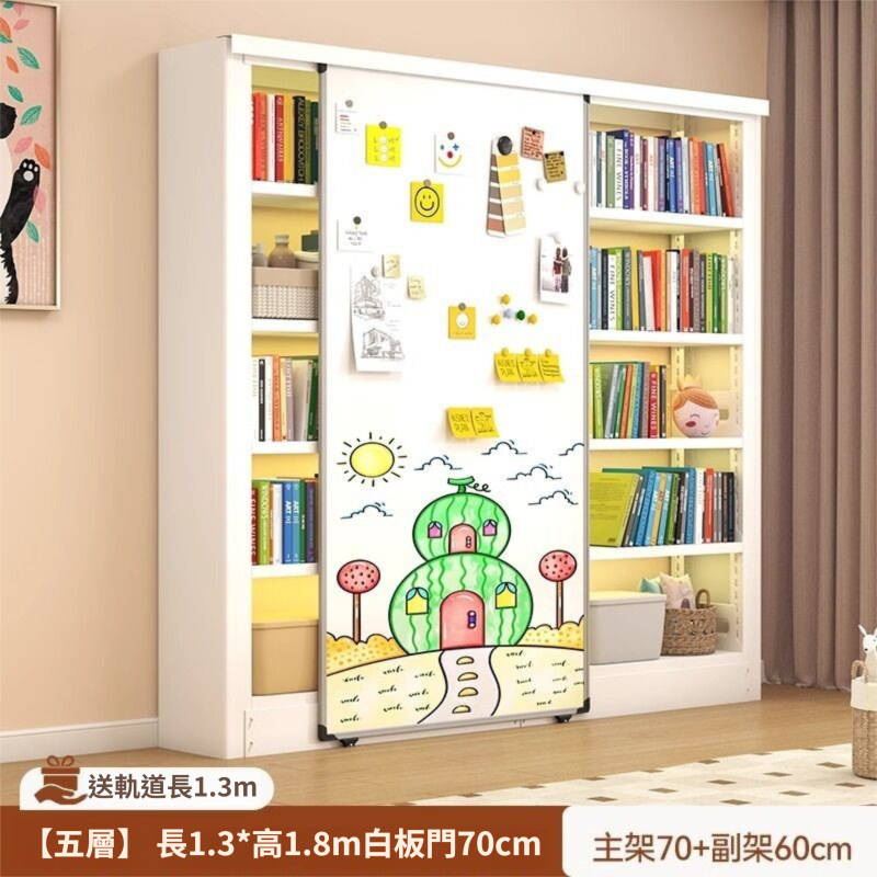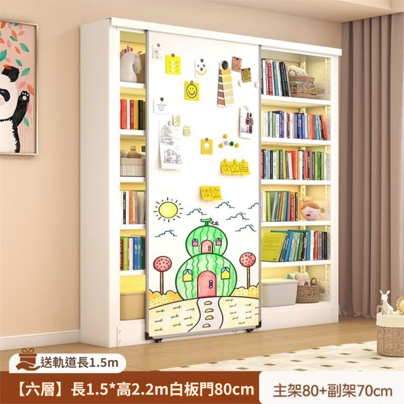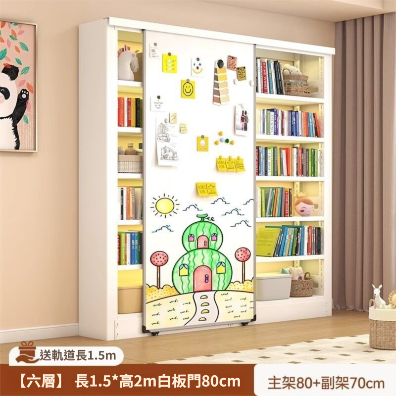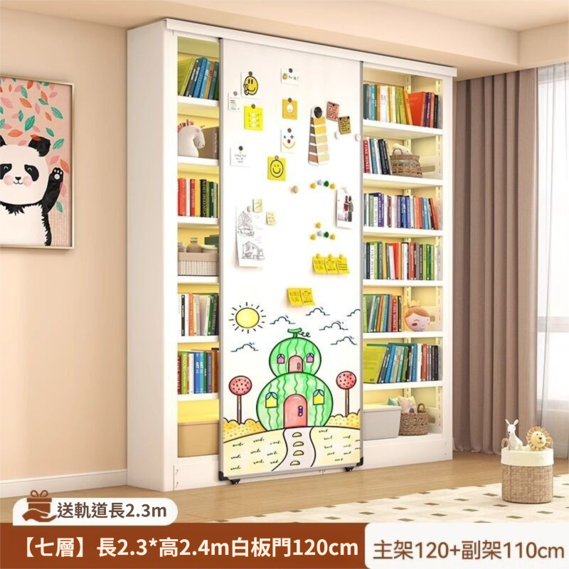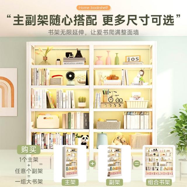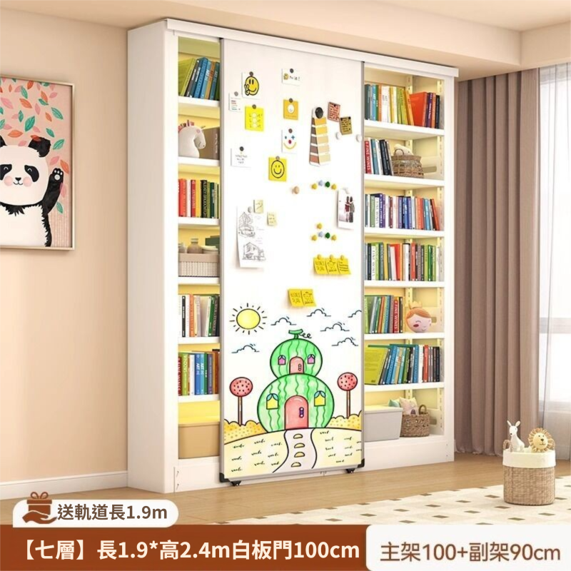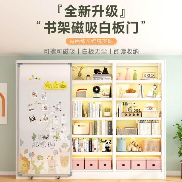 家用帶白板書架陽臺客廳書房一體靠墻多層落地置物架簡易防塵書櫃