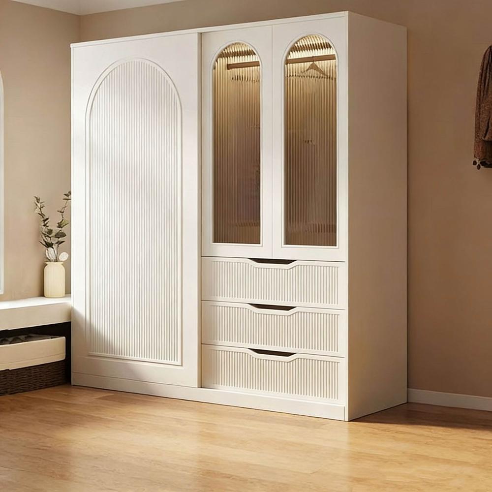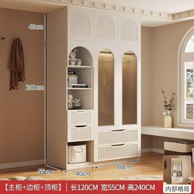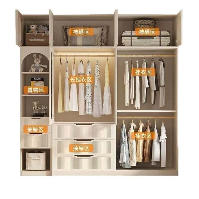 法式奶油風現代衣櫃小戶型推拉門家用臥室儲物櫃現代簡約成品衣櫥